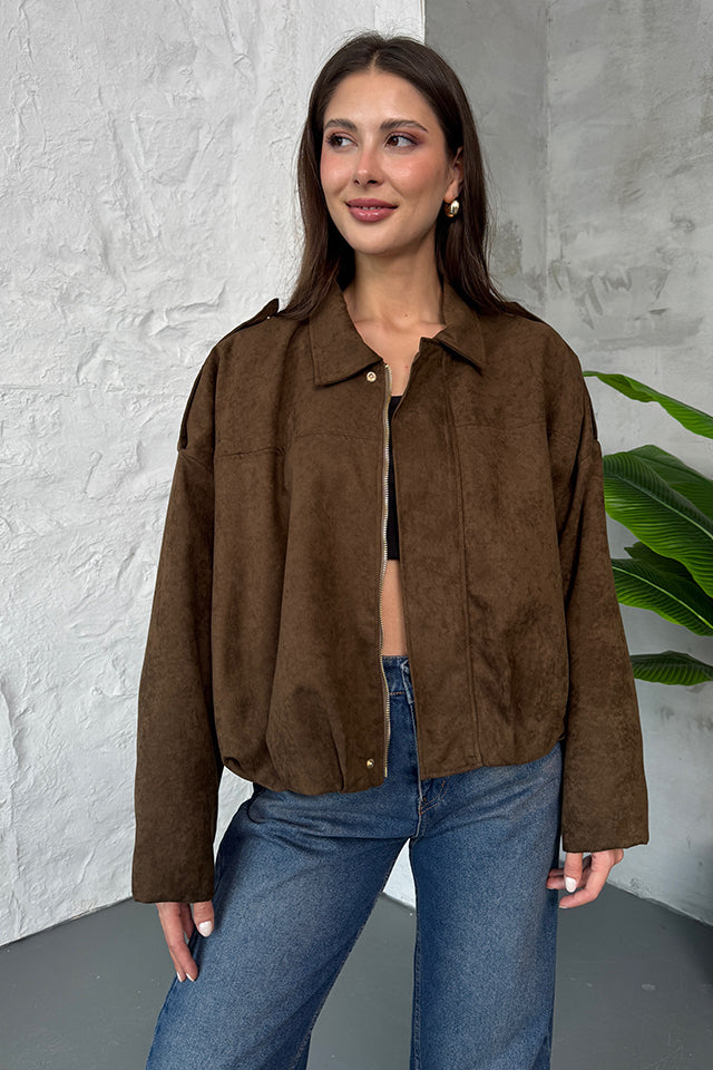 Kahverengi Zr Model Zımba Detaylı Süet Elbise