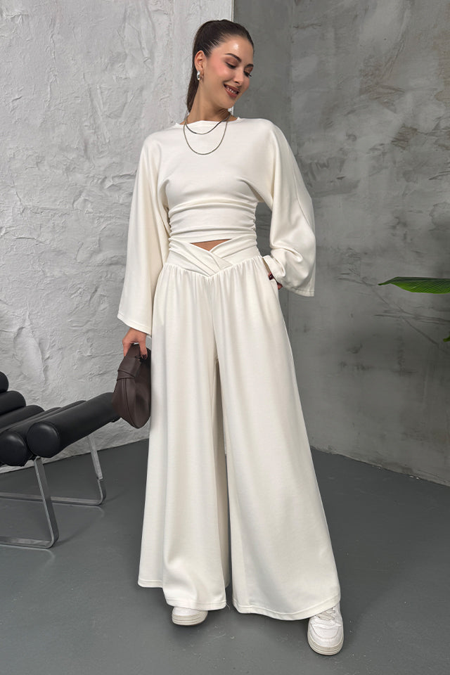 Beyaz Balıkçı Yaka Gold Düğmeli Triko Bluz