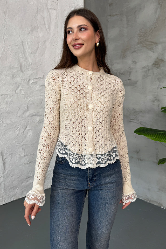Haki Balıkçı Yaka Gold Düğmeli Triko Bluz