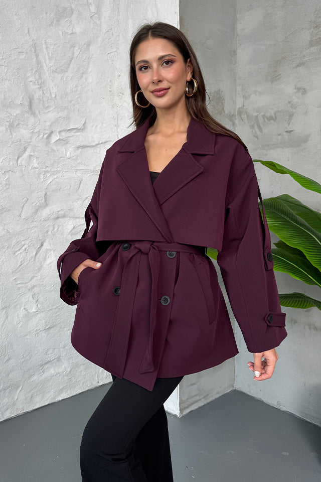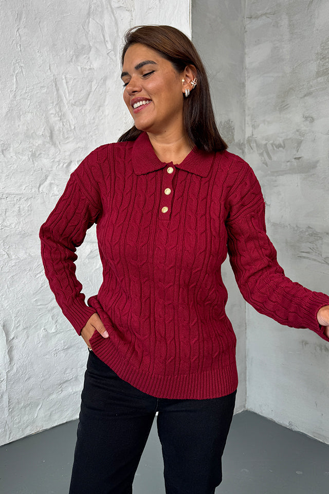Mürdüm Balıkçı Yaka Gold Düğmeli Triko Bluz