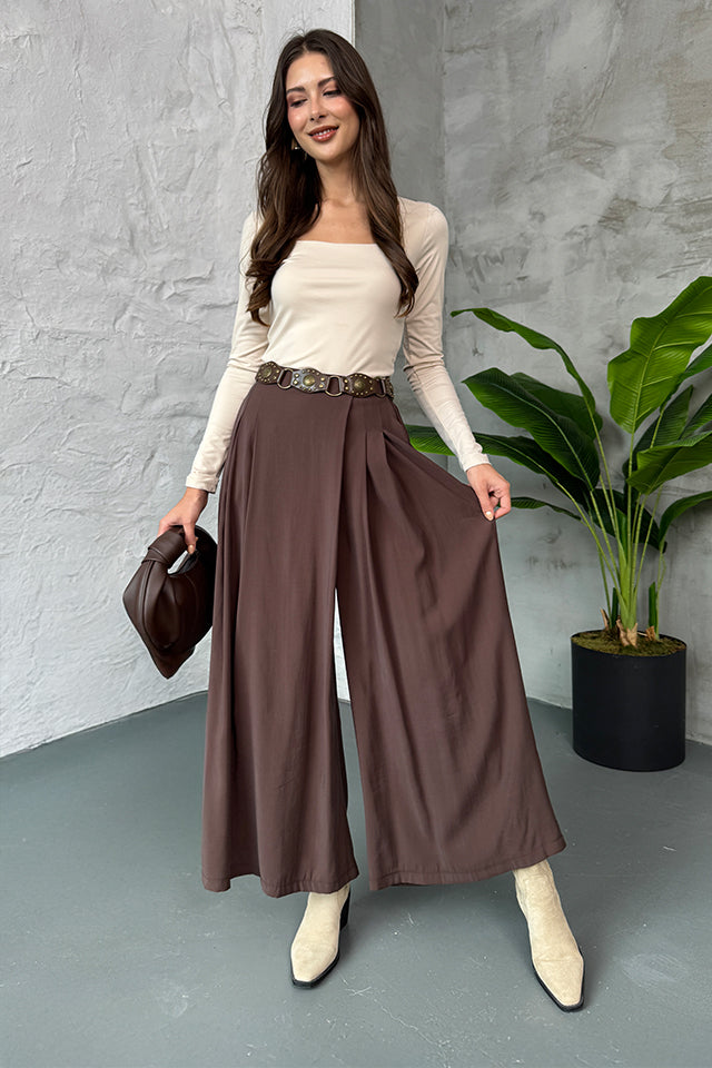 Kahverengi Modal Bluzlu İkili Takım Elbise