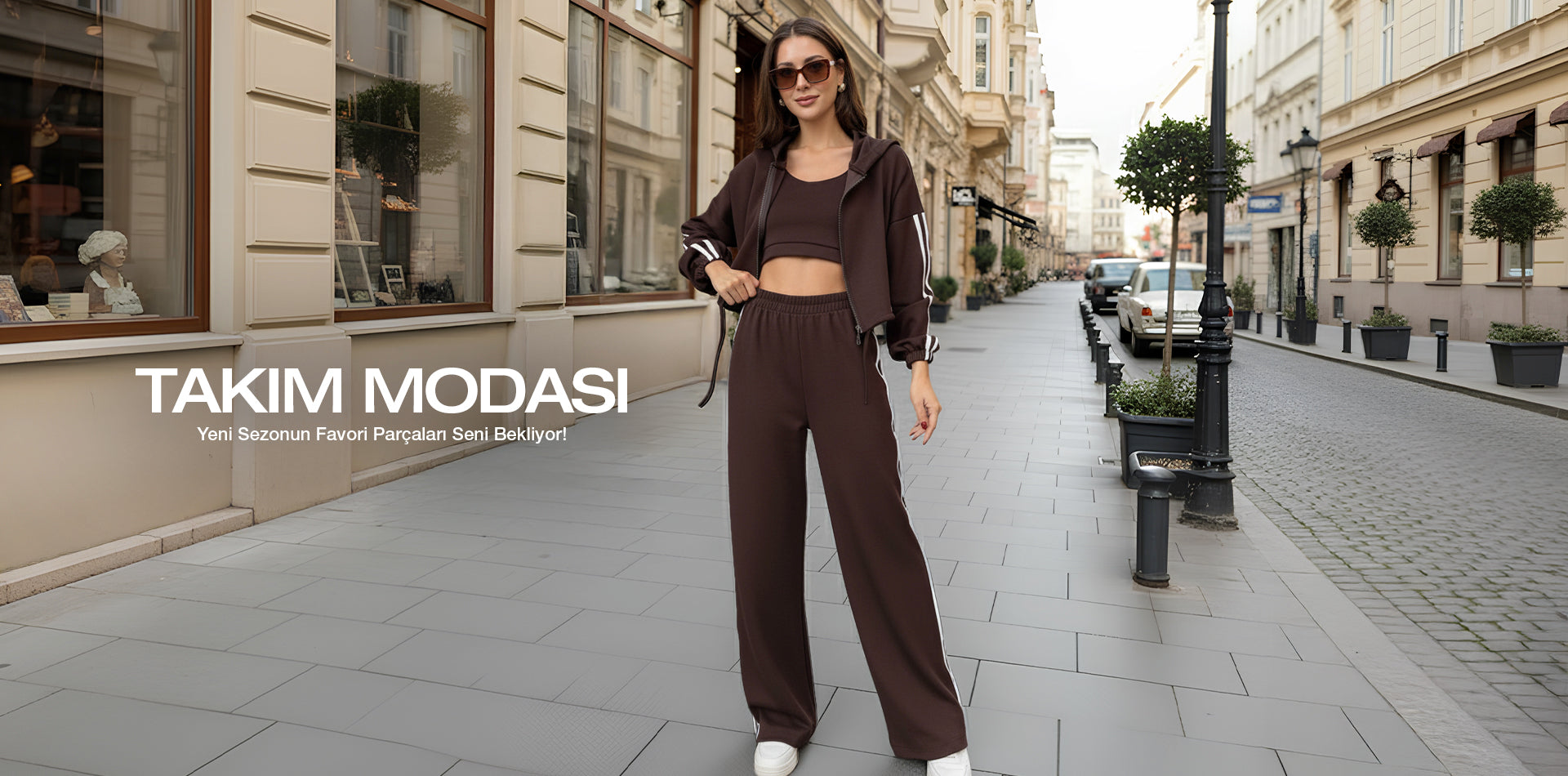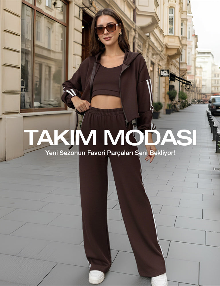 Kahverengi Modal Bisiklet Yaka Sweat Takım