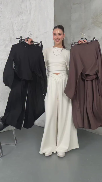 Siyah Kemer Pileli Kolları Volanlı Takım 2136-Siyah