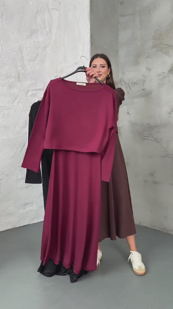 Mürdüm Bluzlu Elbise İkili Takım 7634-Mürdüm