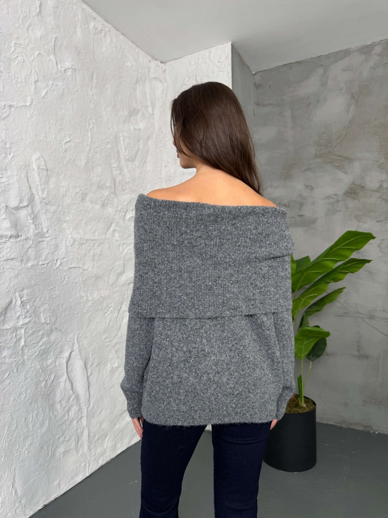 • Antrasit Açık Yaka Baklava Desen Kazak 2530-Antrasit