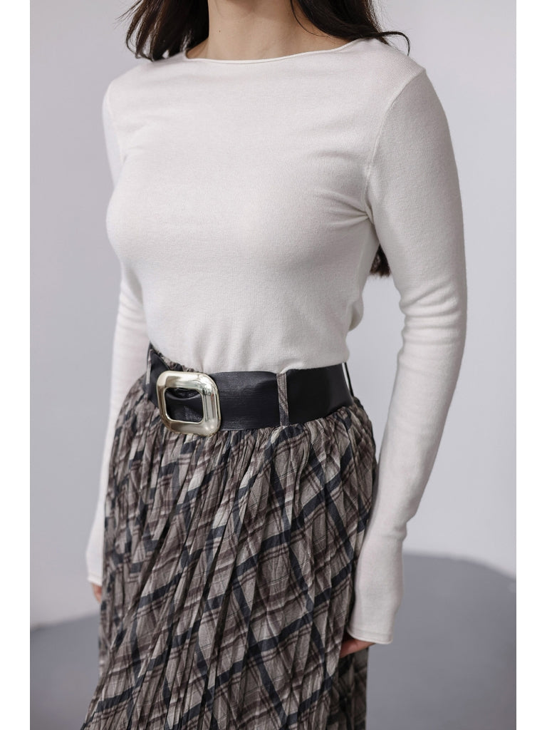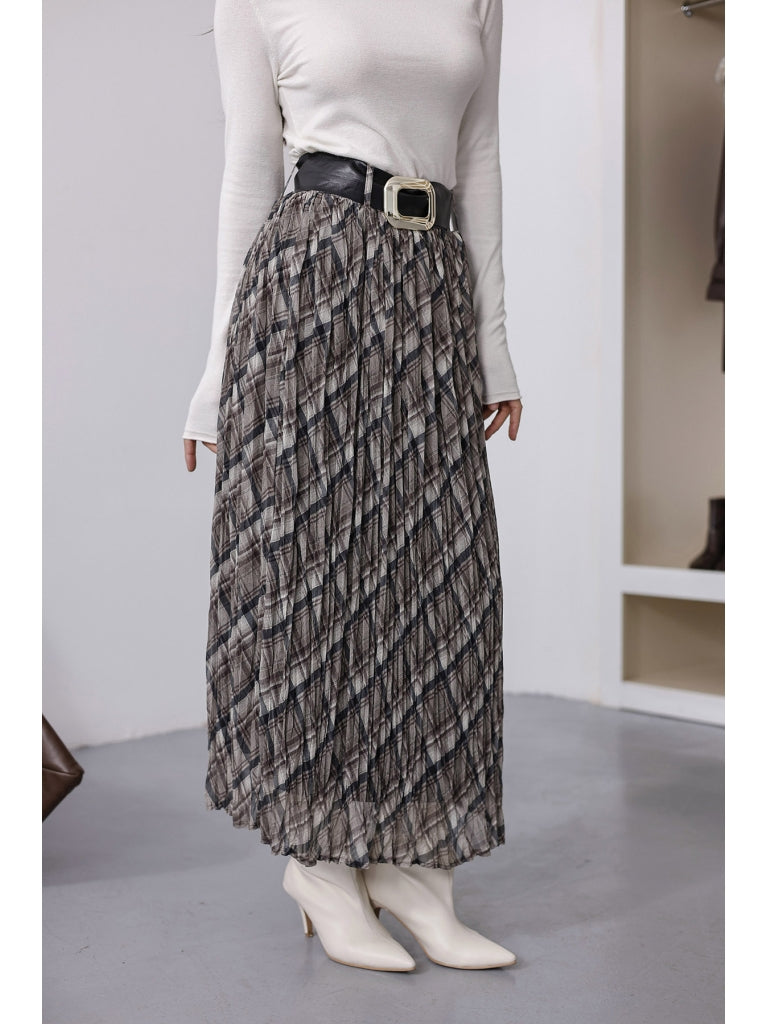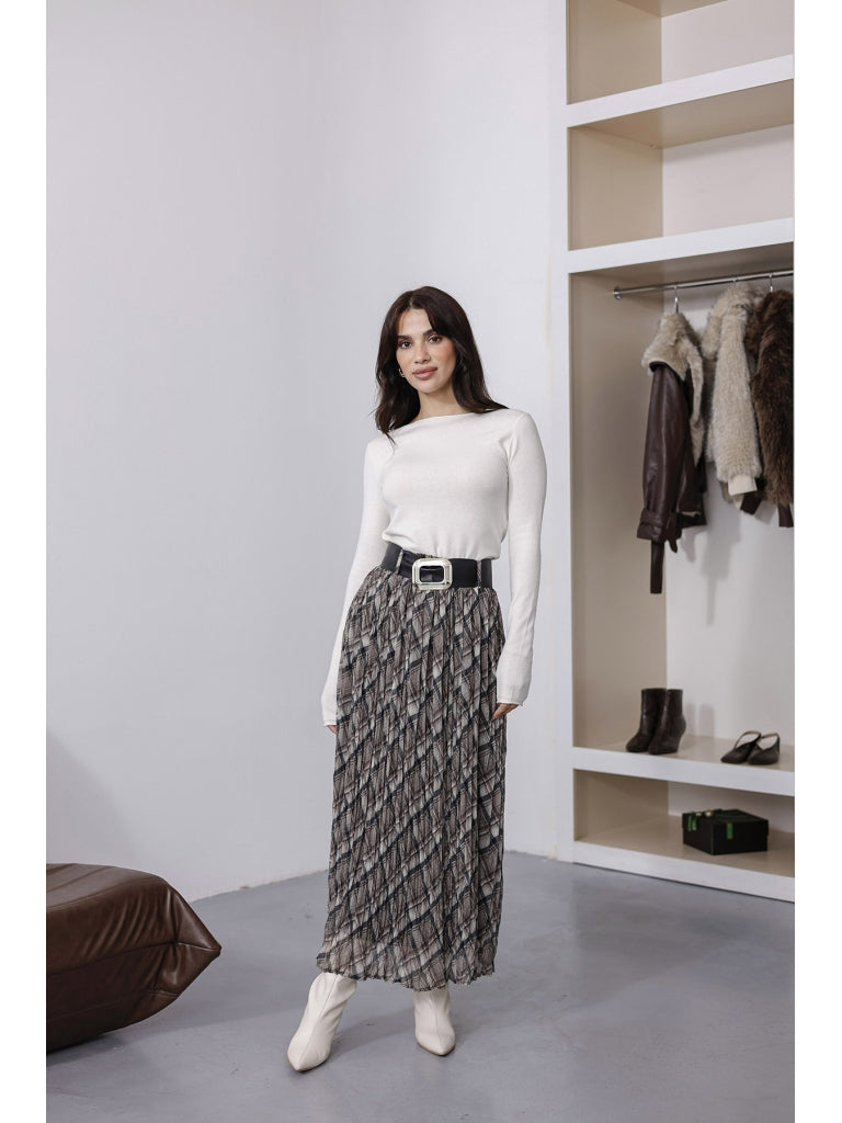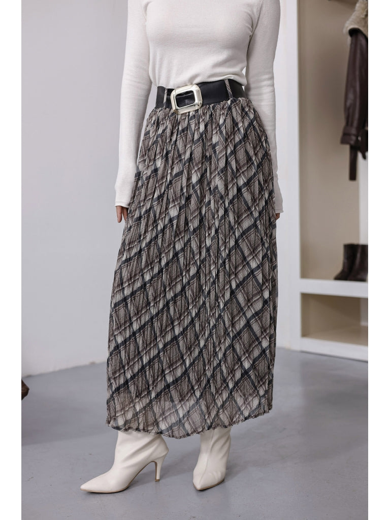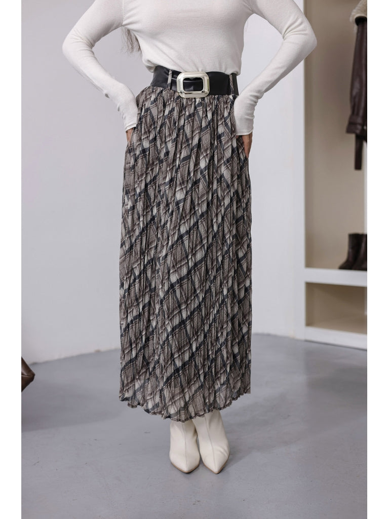Bej Ekose Desen Kemerli Kraş Etek 7735-Bej