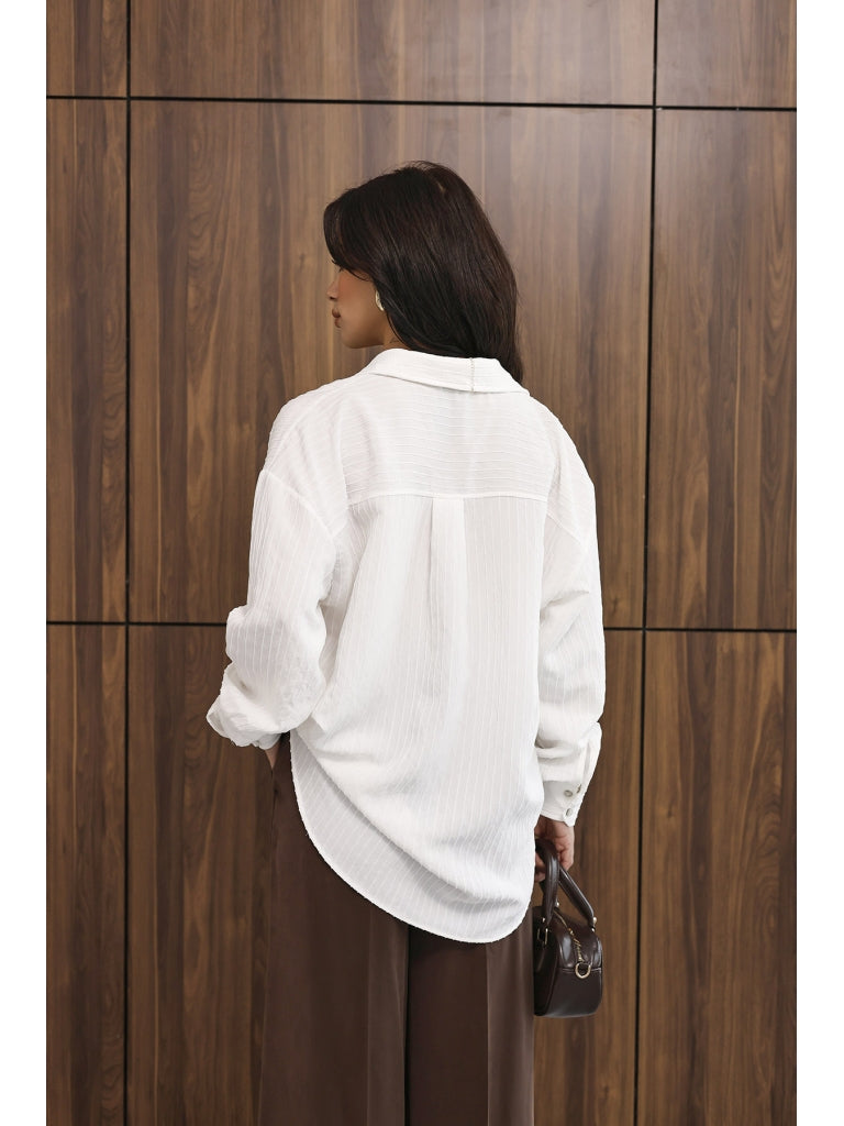 Beyaz Fitilli Oversize Gömlek 5000-Beyaz