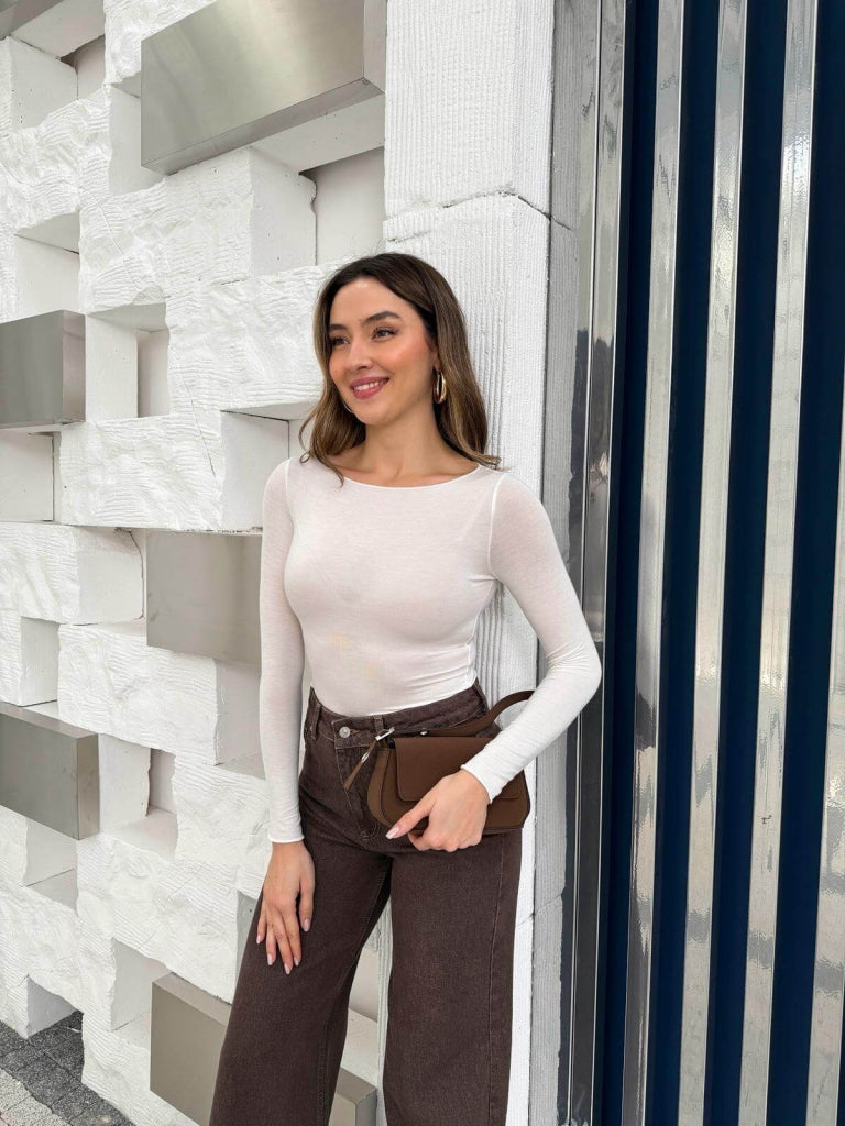 Beyaz Kayık Yaka Transparan Bluz 25187-Beyaz