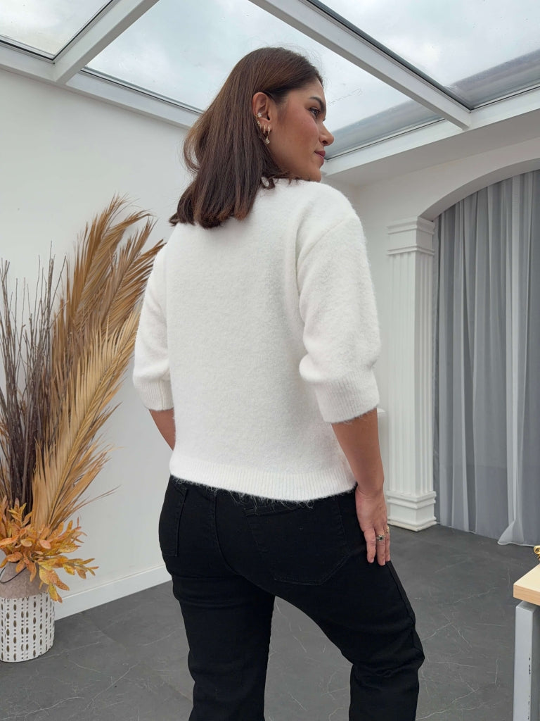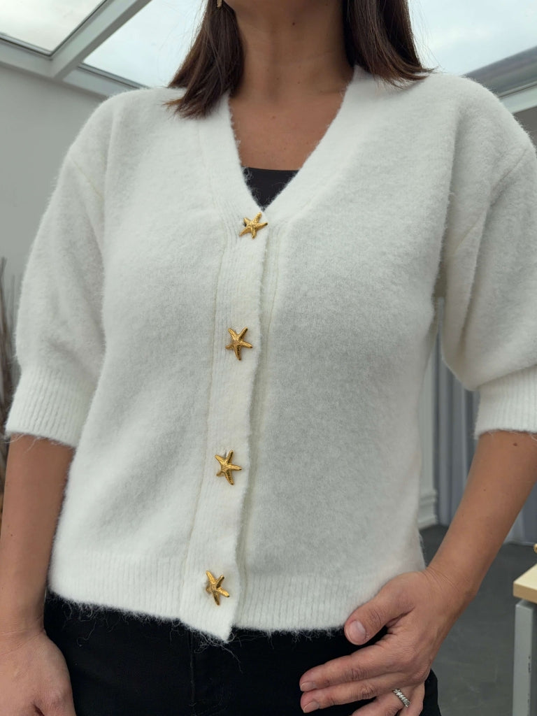 Beyaz Kısa Kol Yıldız Düğmeli Top Hırka 2511-BEYAZ