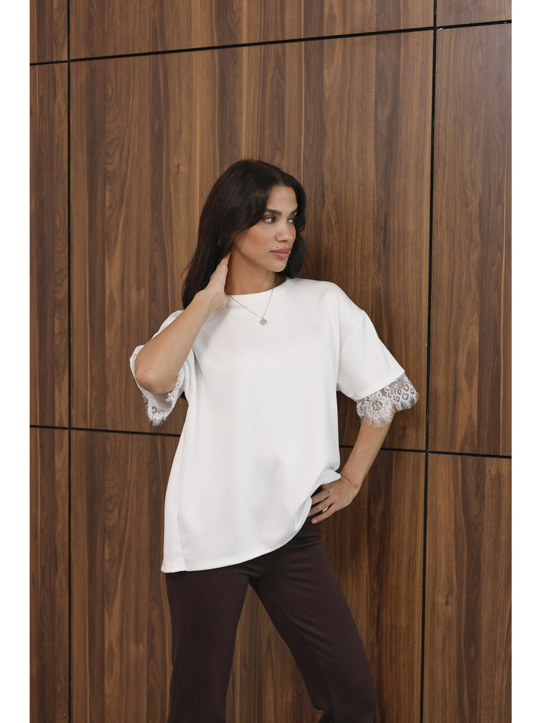 Beyaz Sırtı Dantelli Tshirt 1073-Beyaz
