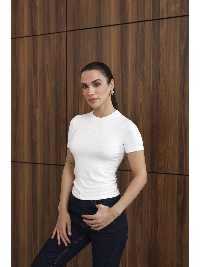 Beyaz Taş Baskılı Body EY137-Beyaz