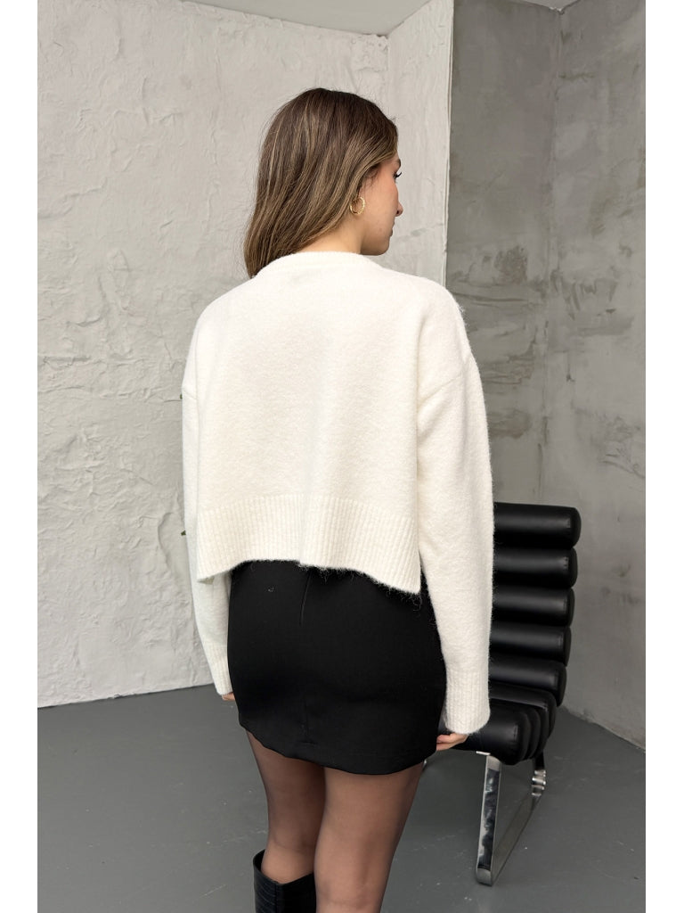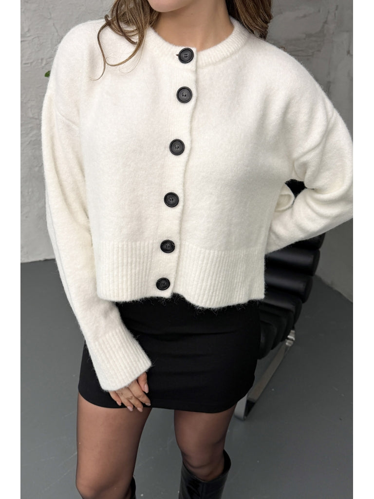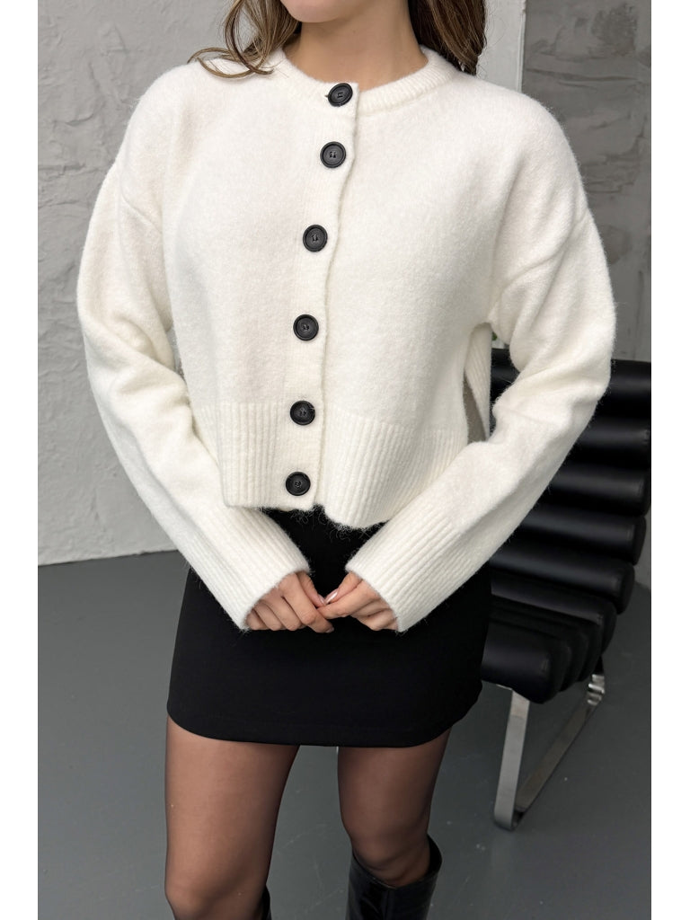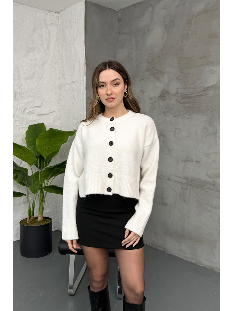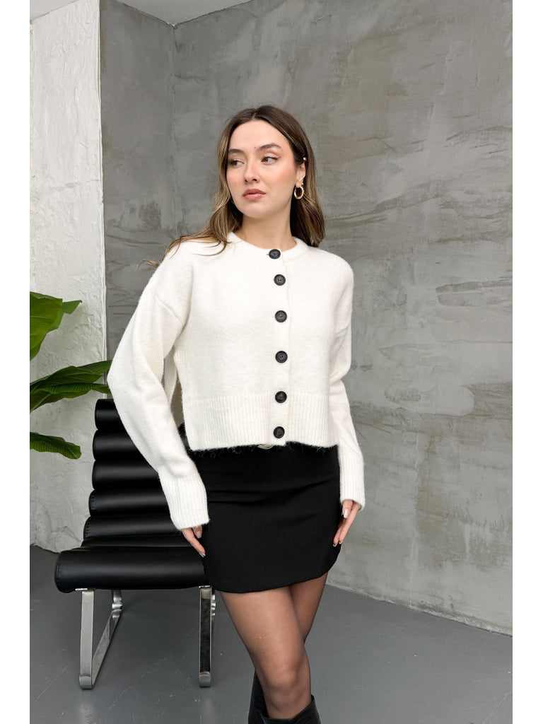 Dilvin Ekru Yırtmaçlı Yumuşak Dokulu Hırka 60280-Ekru