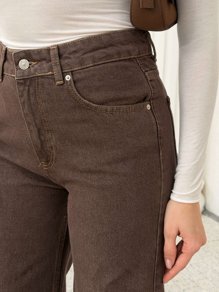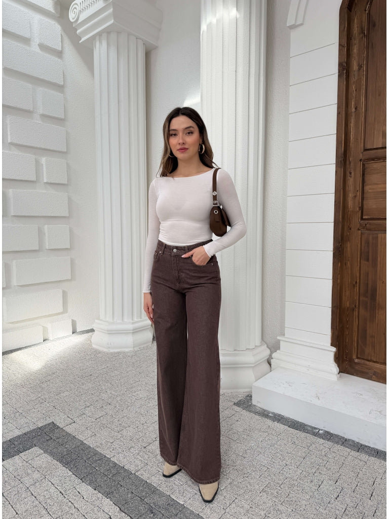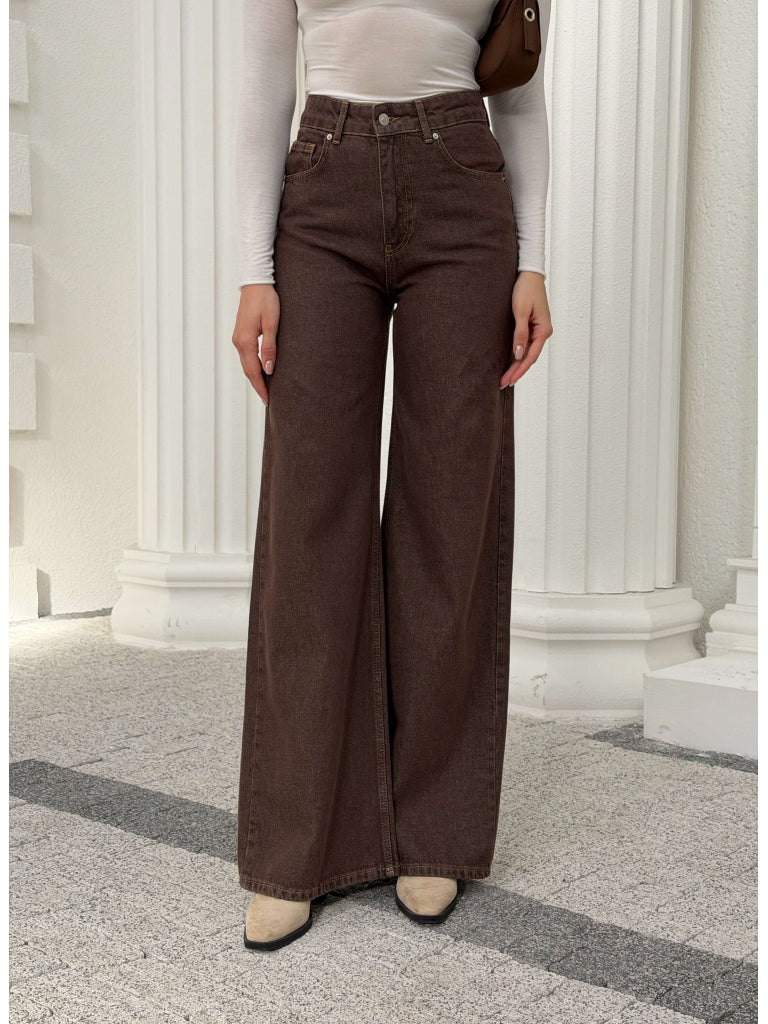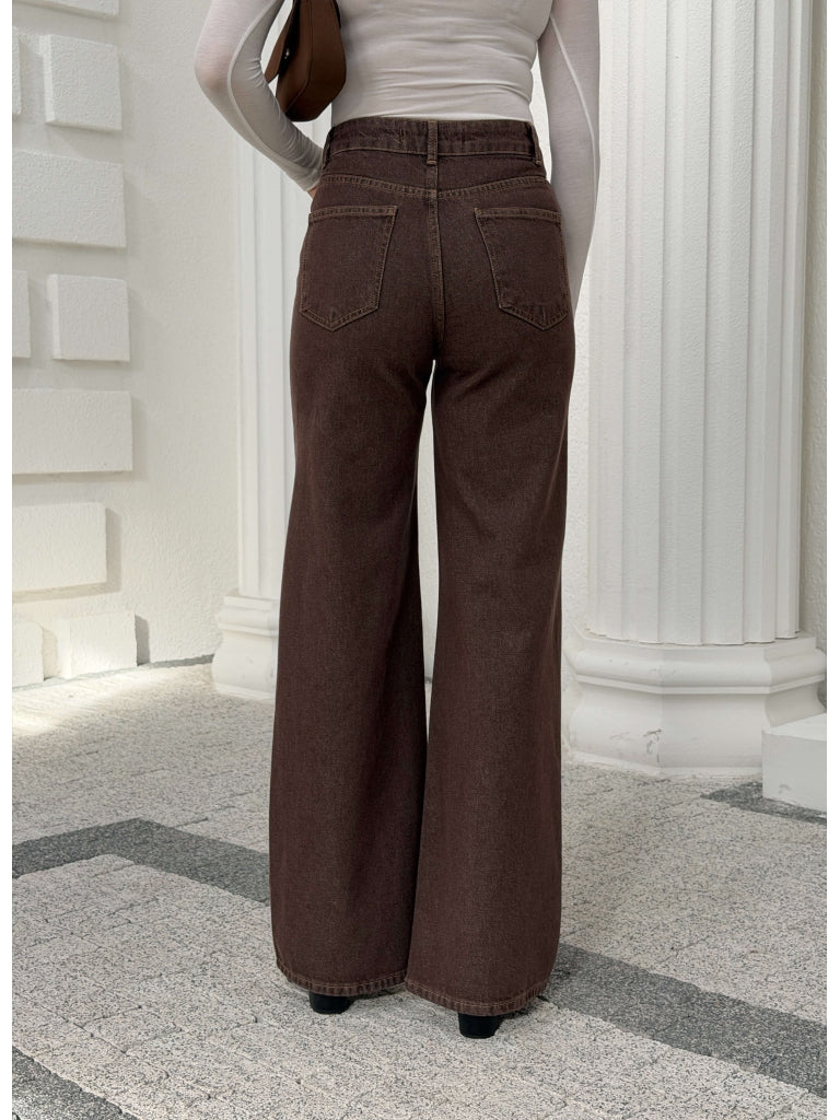 Dilvin Kahverengi Geniş Paça Jean 72033-Kahverengi