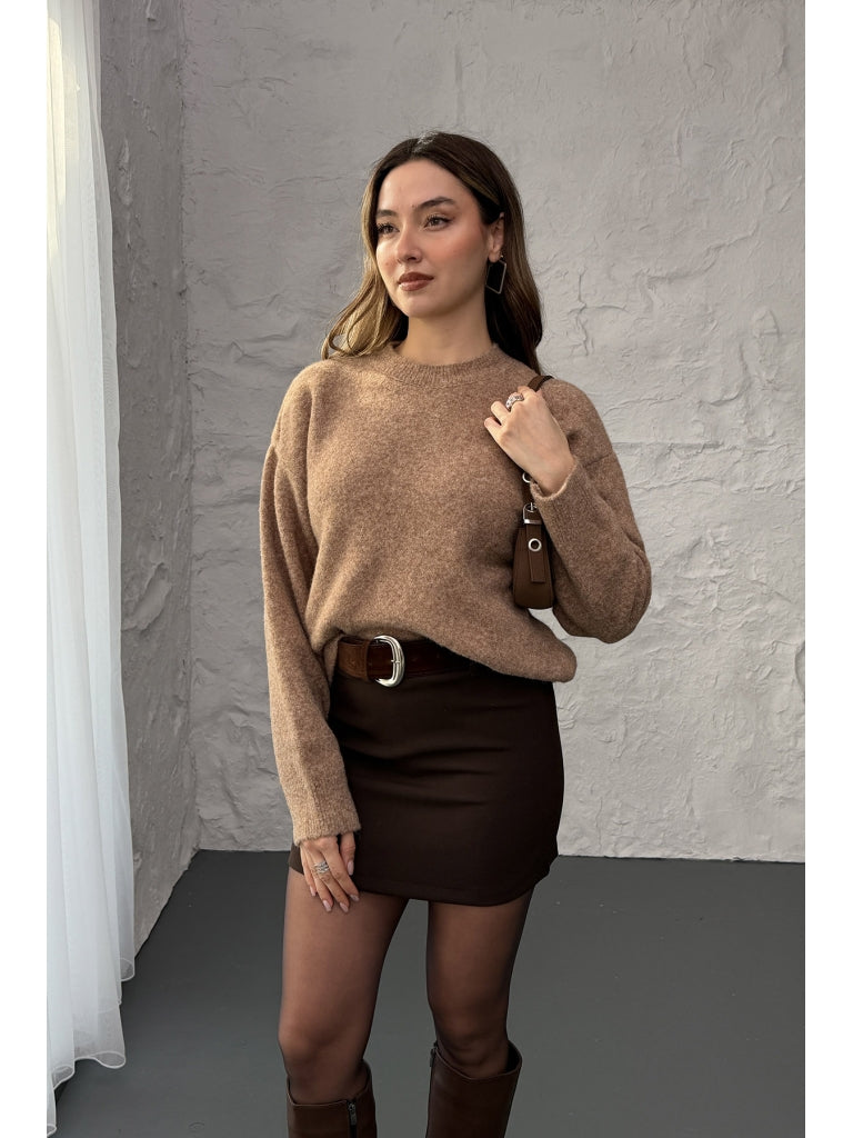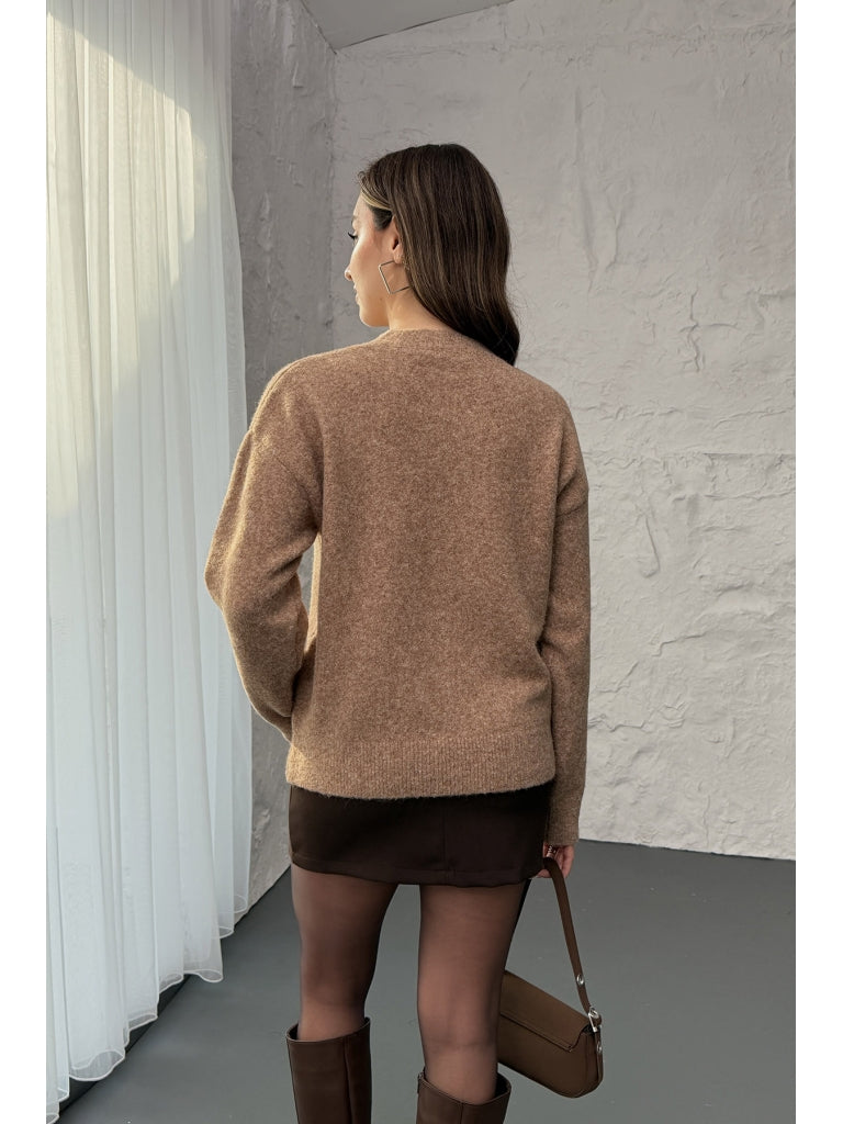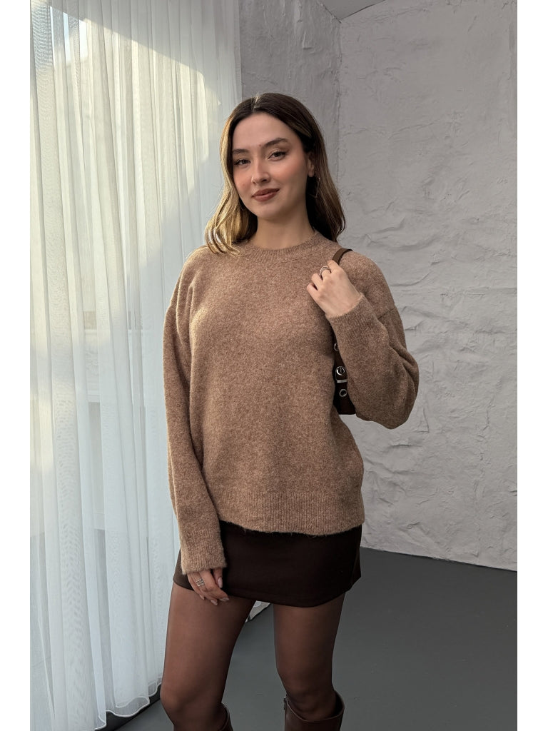 Dilvin Koyu Bej Yün Karışımlı Kazak 10640-Koyu Bej