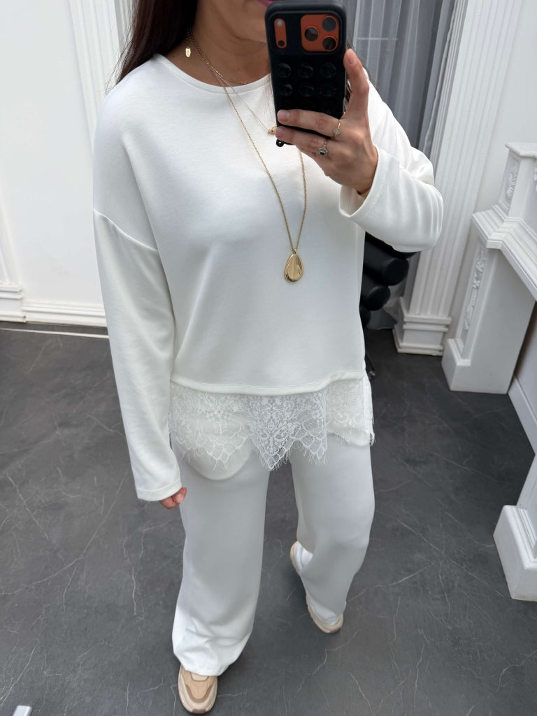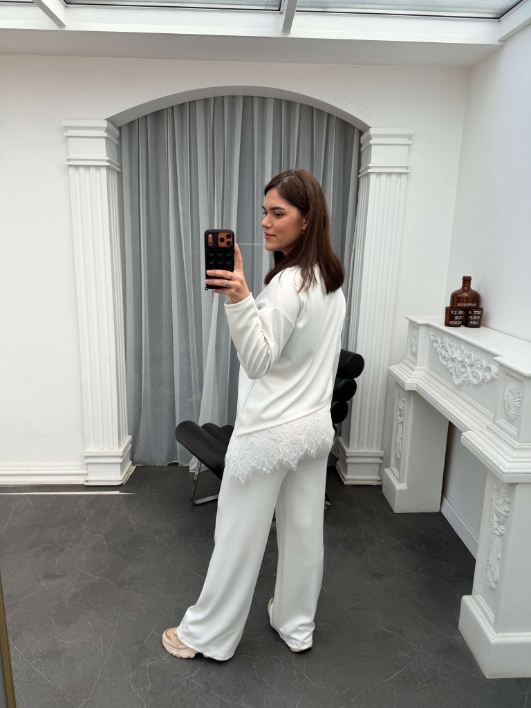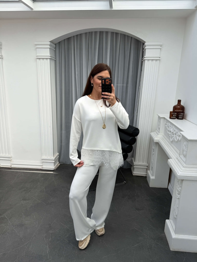 Ekru Etek Ucu Dantelli Modal Takım 4105-Ekru
