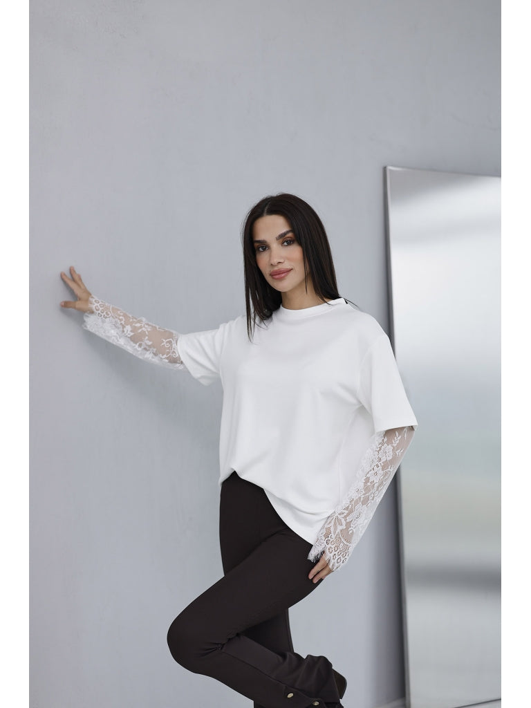 Ekru Güpür Kollu Bluz EY0302-Ekru