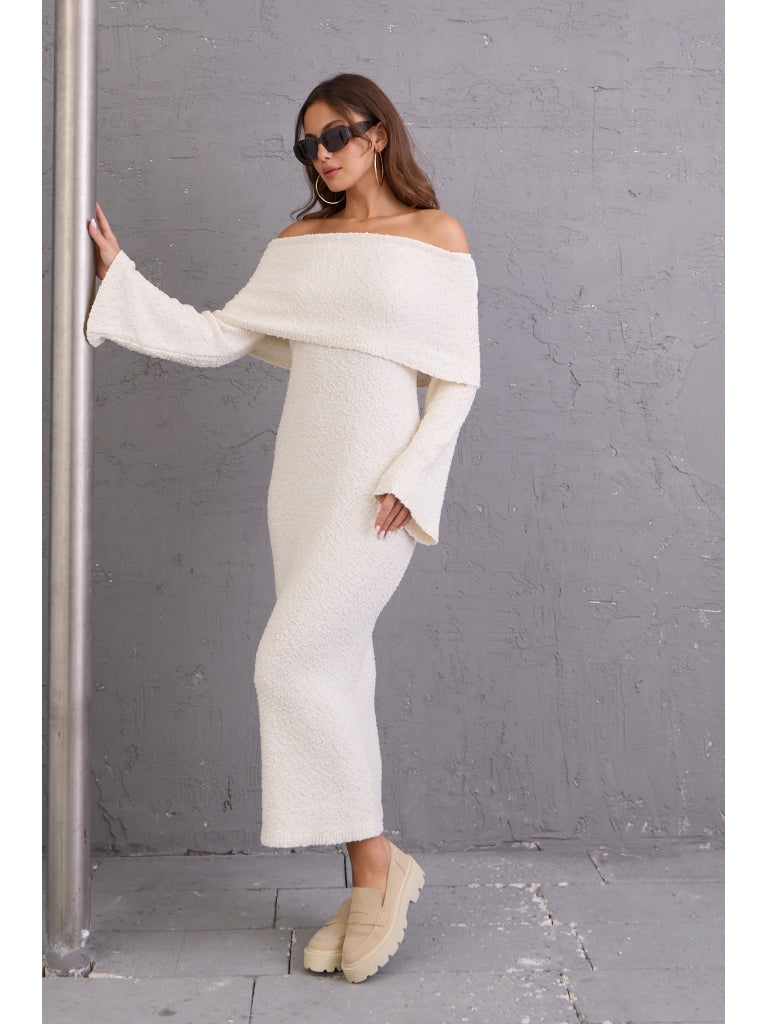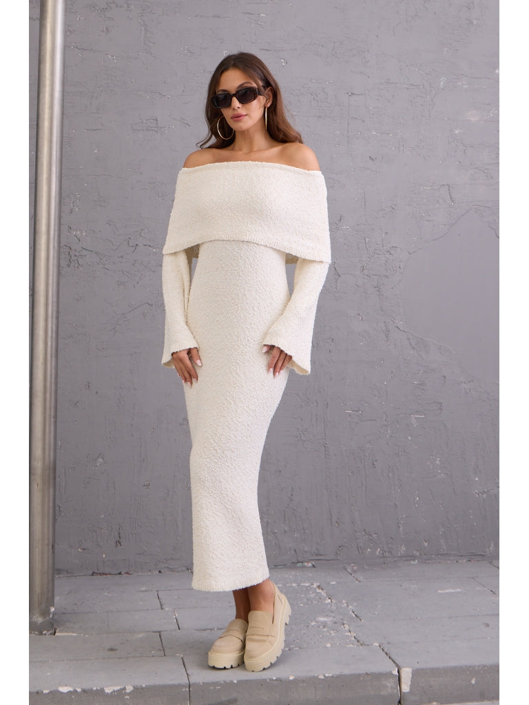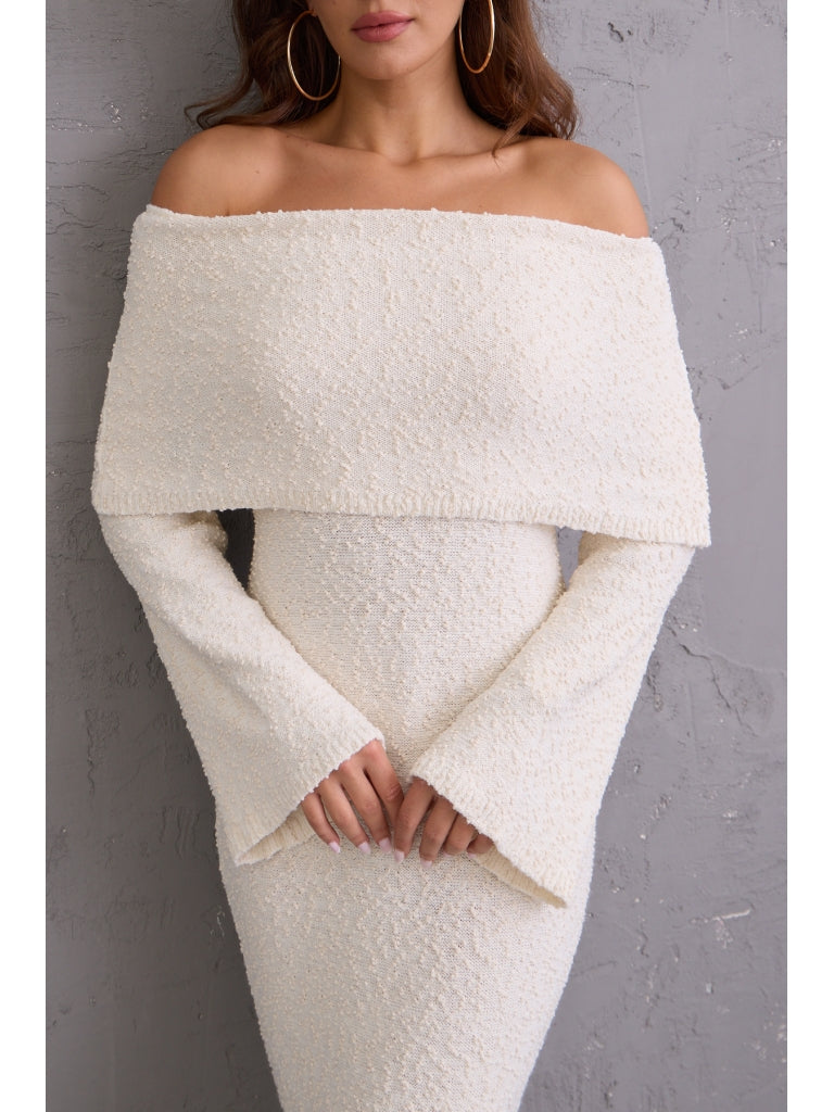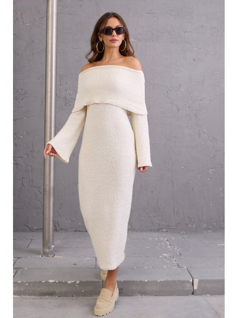 Ekru Madonna Yaka Dokulu Triko Elbise, şıklığı ve rahatlığı bir araya getiren zarif bir parçadır. Off-shoulder tasarımı, modern bir görünüm sunarak boynu vurgular. Yumuşak dokusu sayesinde gün boyu konfor sağlar. Uzun kollu ve maxi boyu ile her mevsim kullanılabilir bir seçenek oluşturur. Bu elbiseyi spor ayakkabılarla ya da şık topuklularla kombinleyerek farklı stiller yaratabilirsiniz.