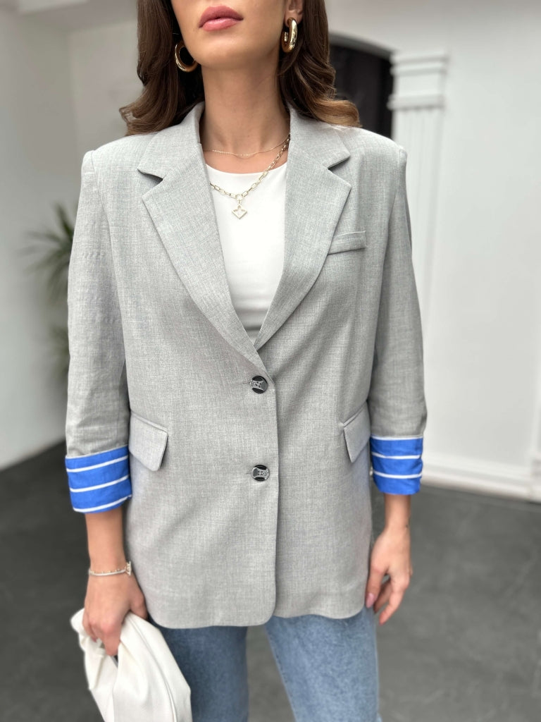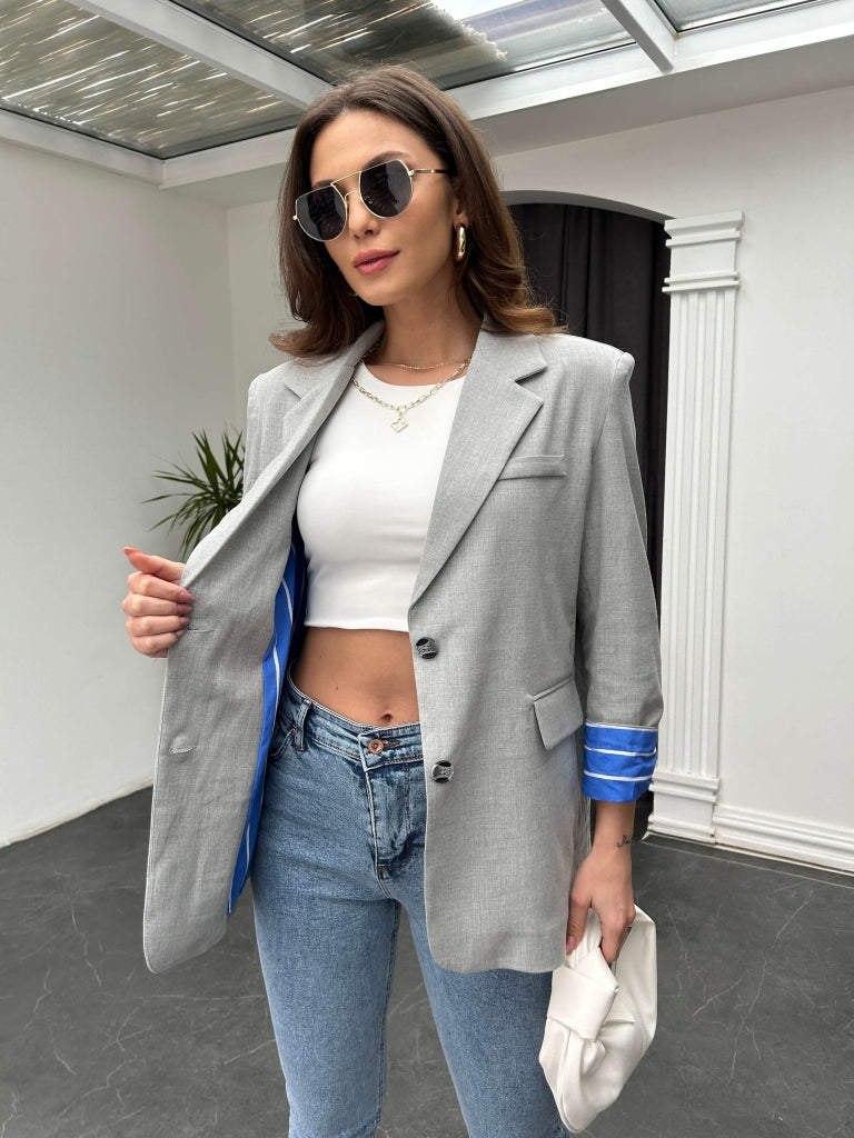 • Gri İçi Gömlek Detaylı Tasarım Ceket