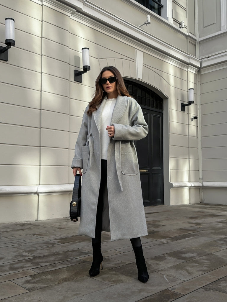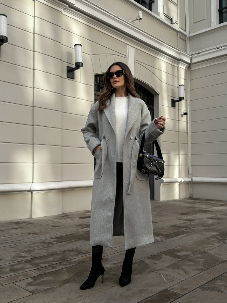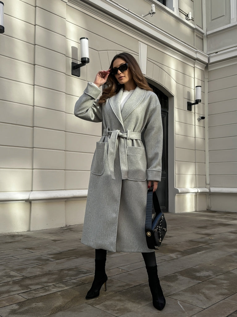 • Gri Şal Yaka Premium Kaban 20071-GRİ