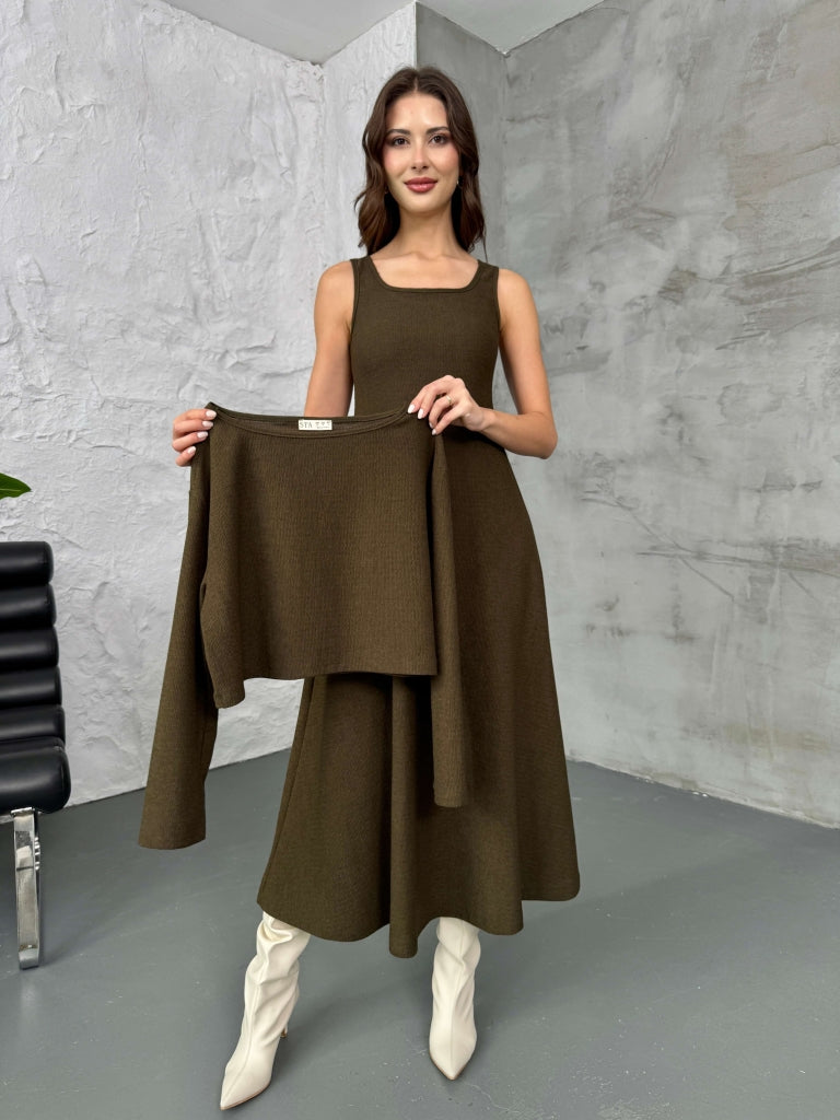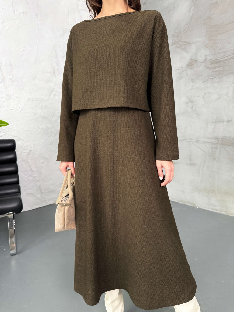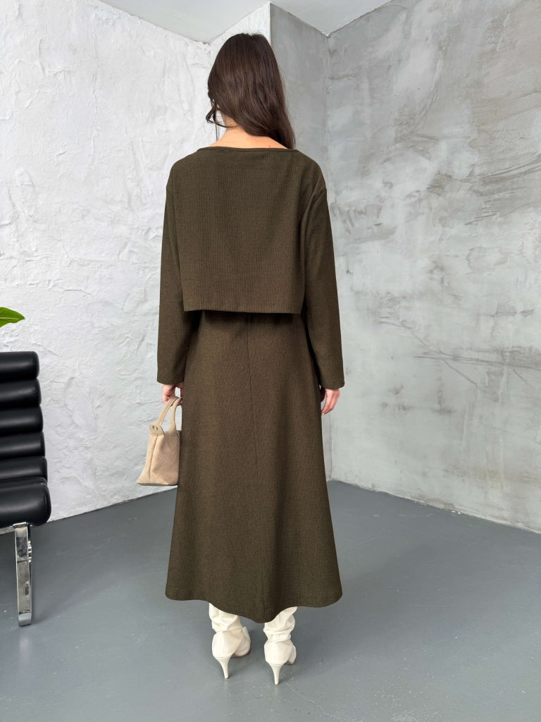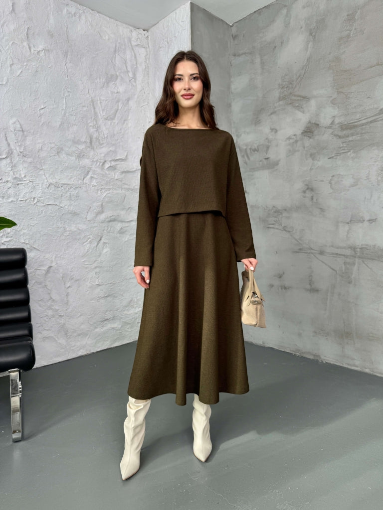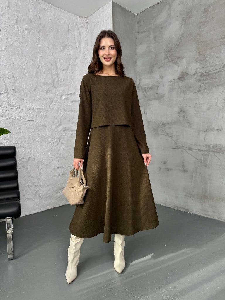 • Haki Bluzlu Elbise İkili Takım 7634-Haki
