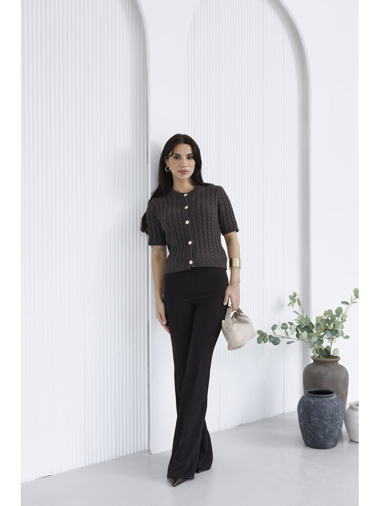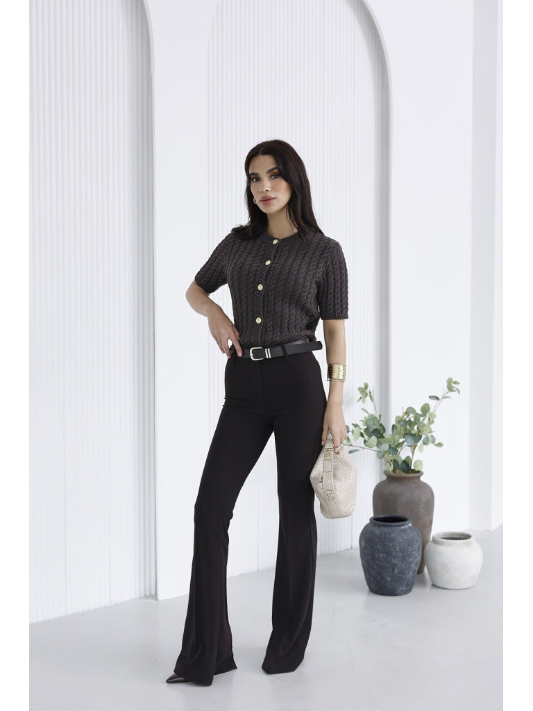 Kahverengi Gold Kemerli İspanyol Paça Pantolon 1741-Kahverengi