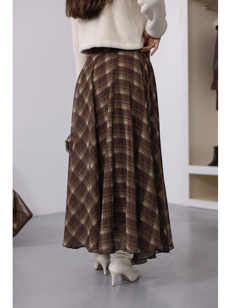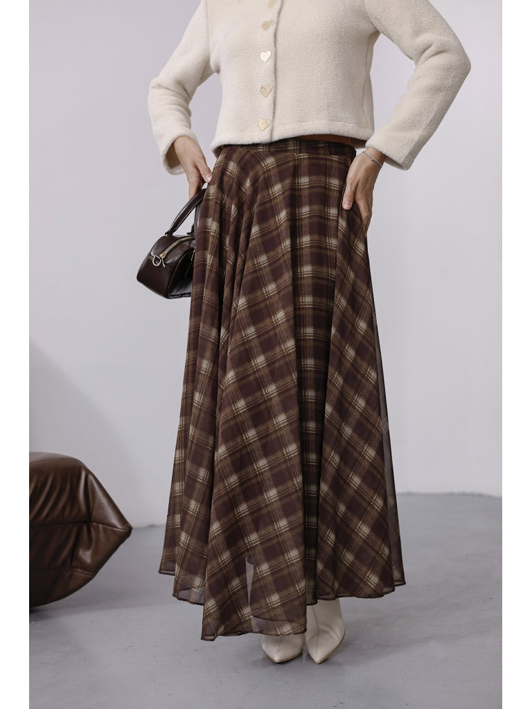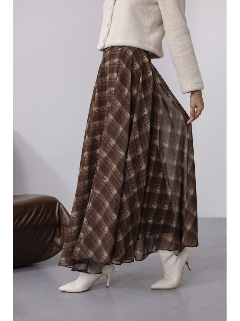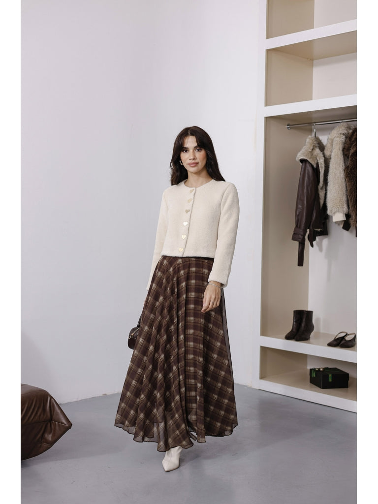 Kahverengi Haki Ekose Detaylı Şifon Etek 0613-Kahve Haki