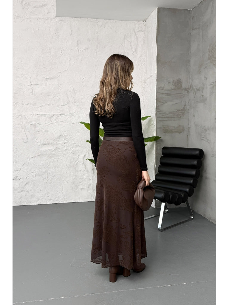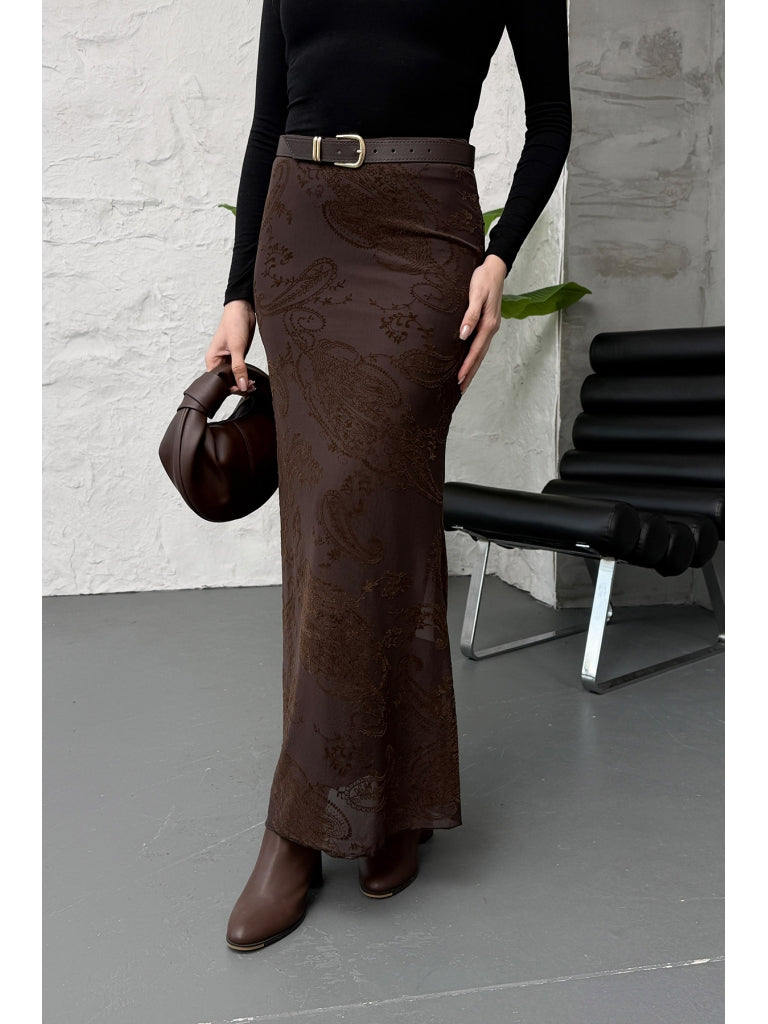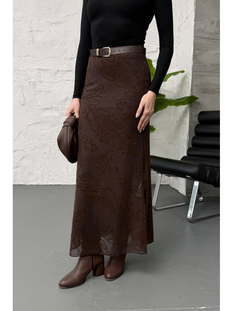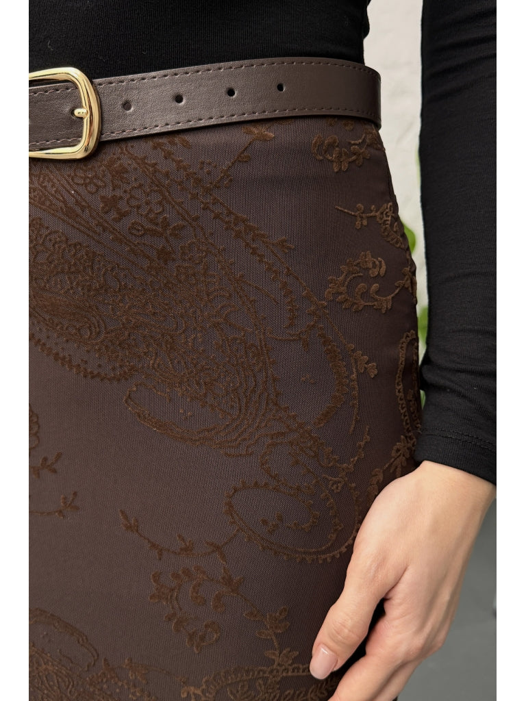 Kahverengi Kadife Desen Etek 251134-Kahverengi