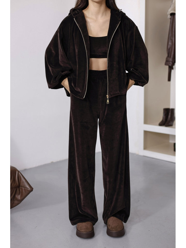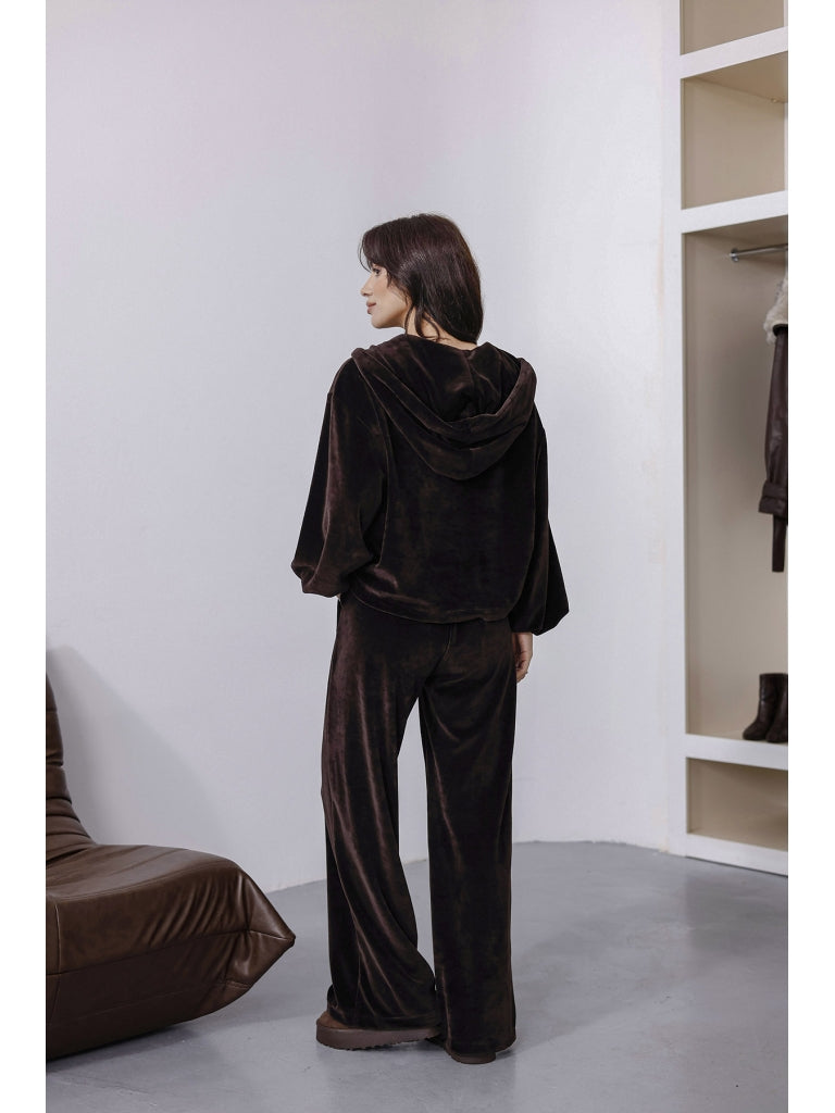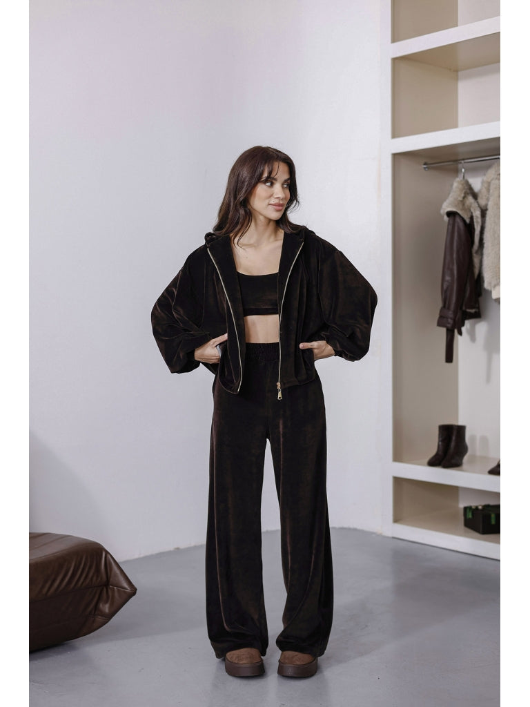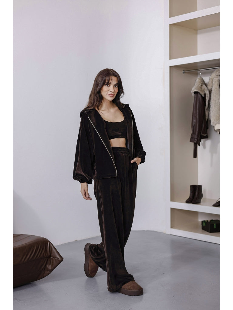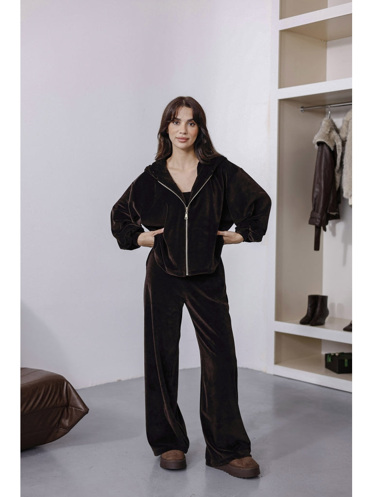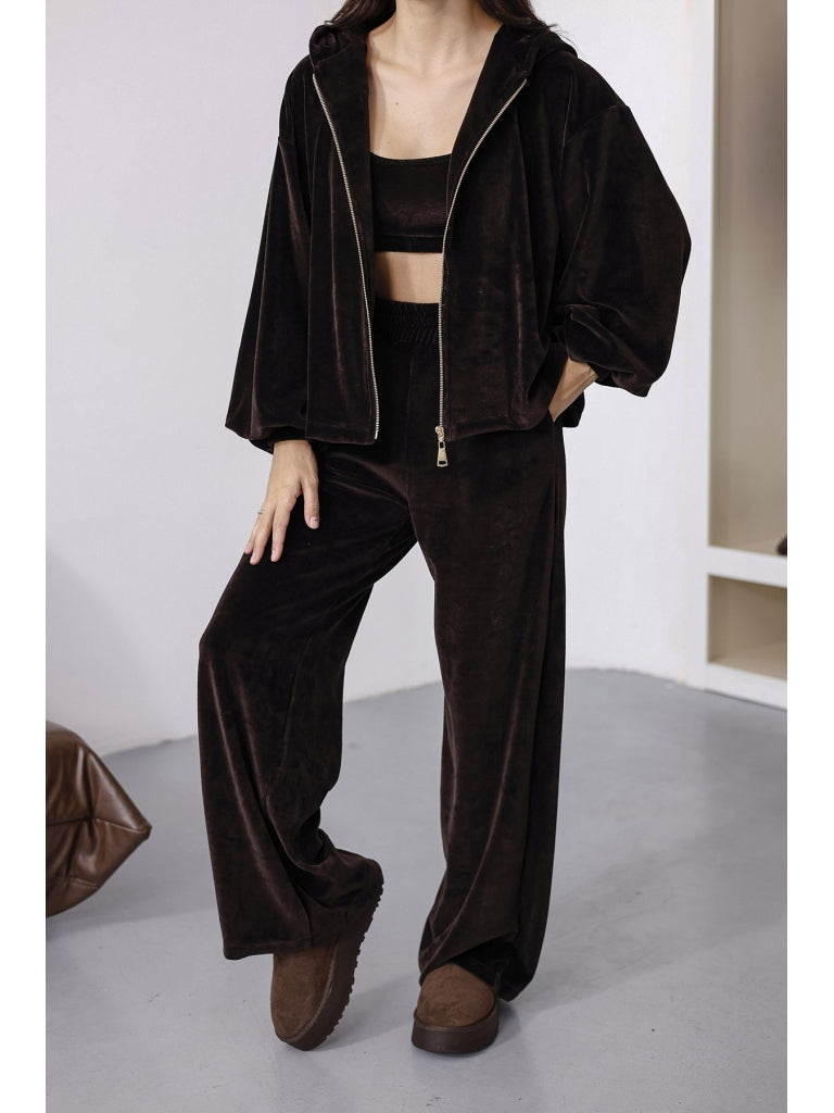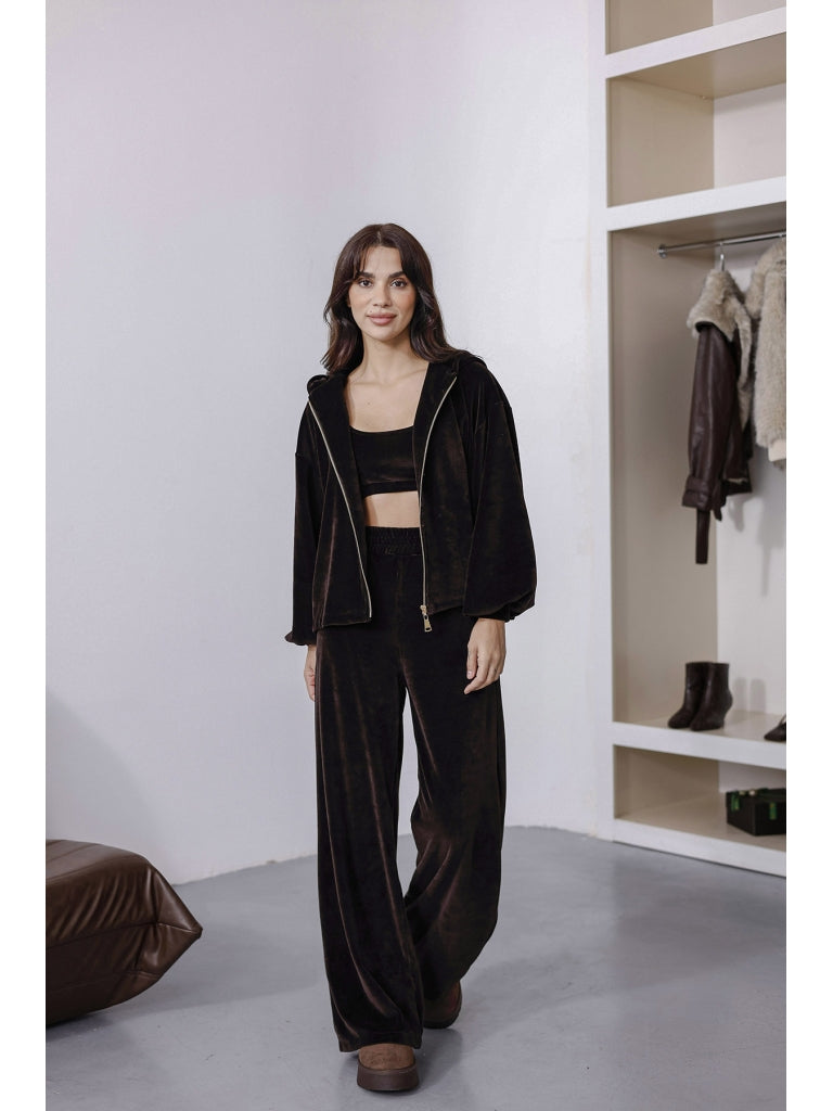 Kahverengi Üç Parça Kadife Takım 0097-Kahverengi