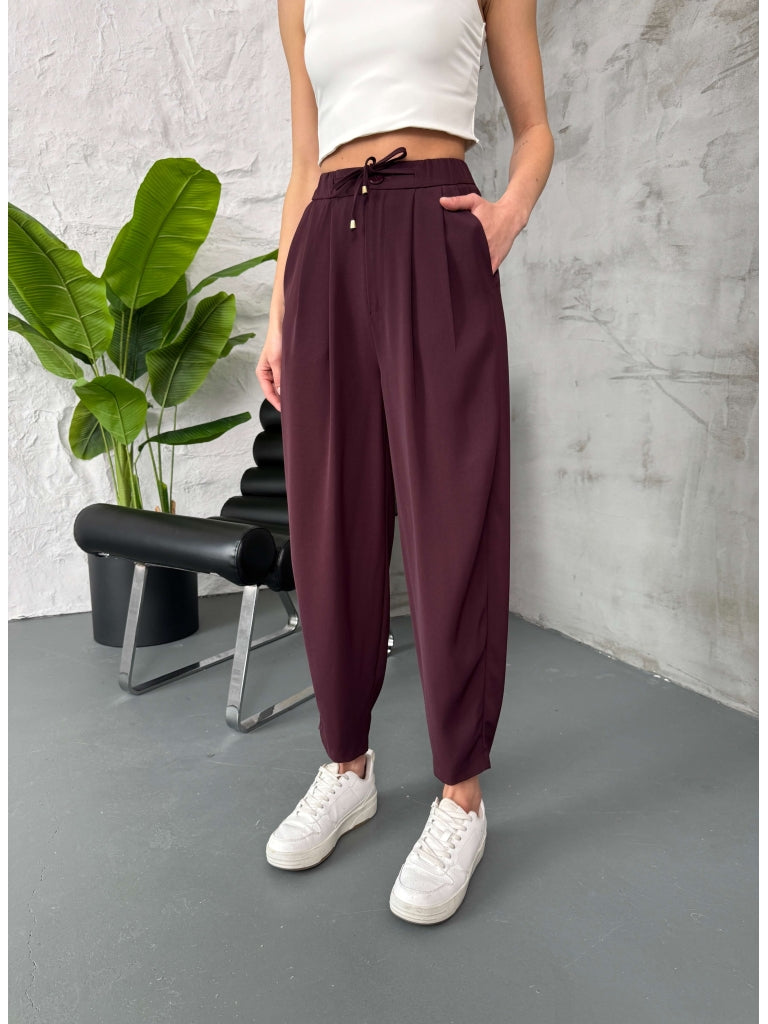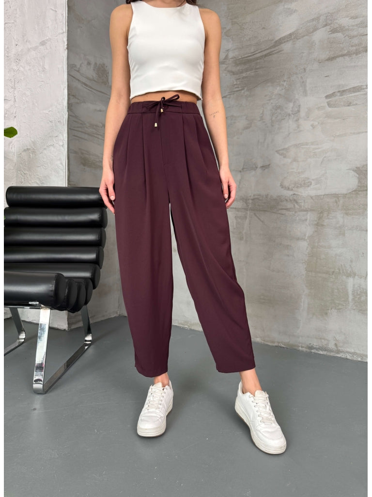 Mürdüm Beli İp Detaylı Pileli Pantolon