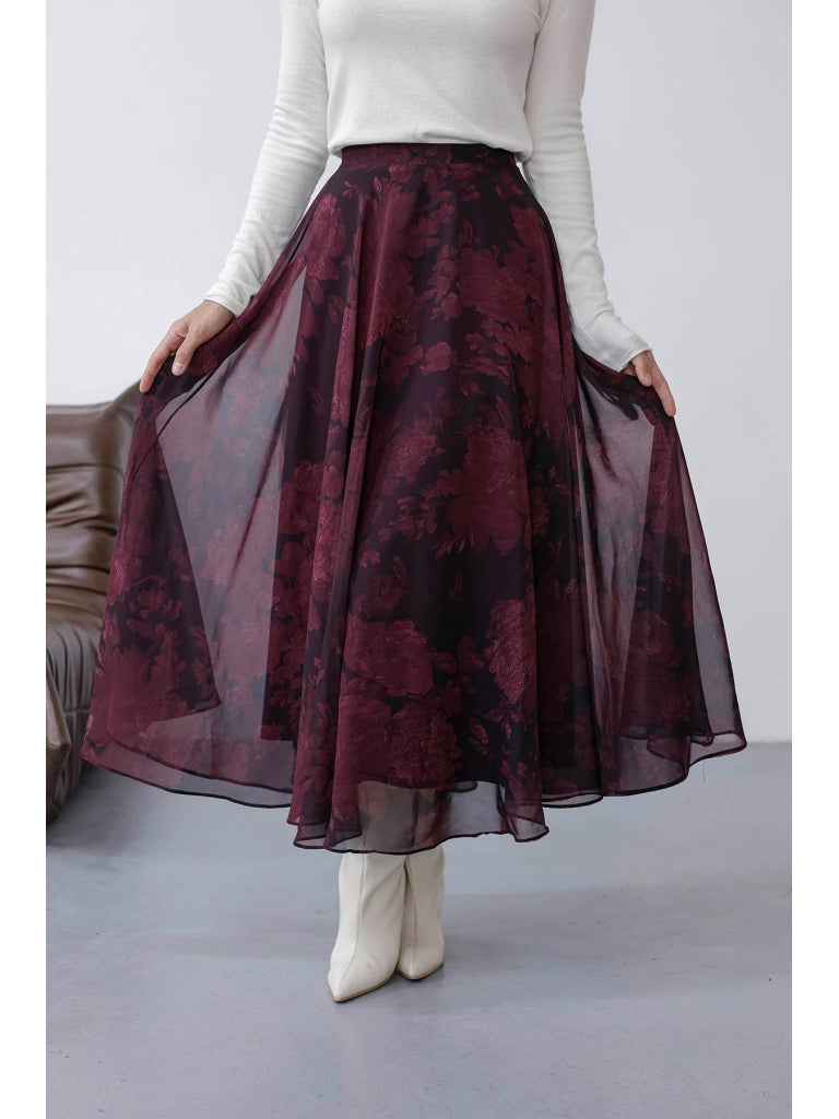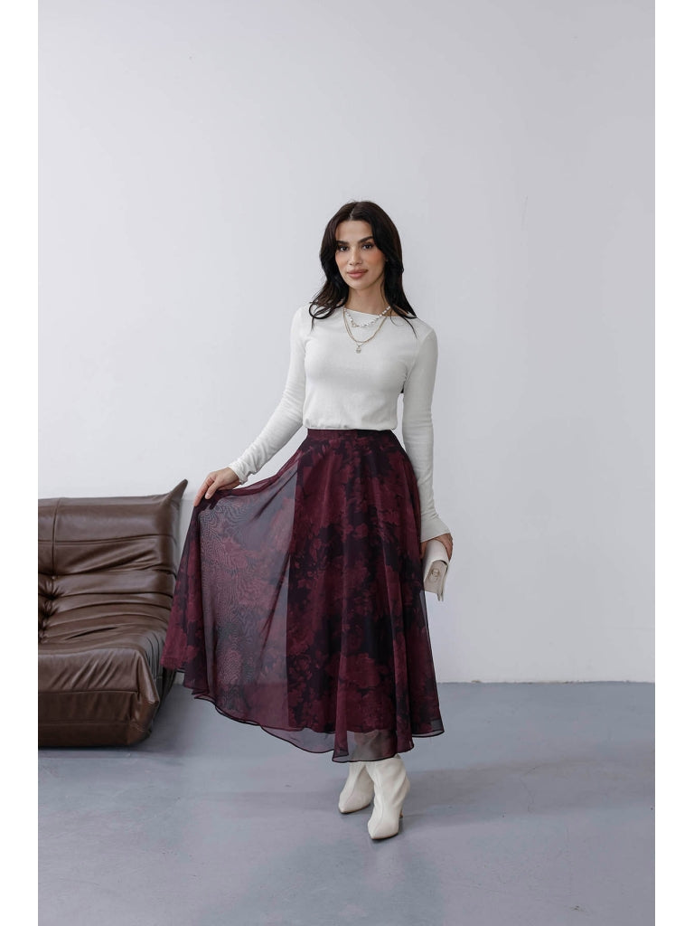 Mürdüm Çiçek Detaylı Şifon Etek 0613-Mürdüm