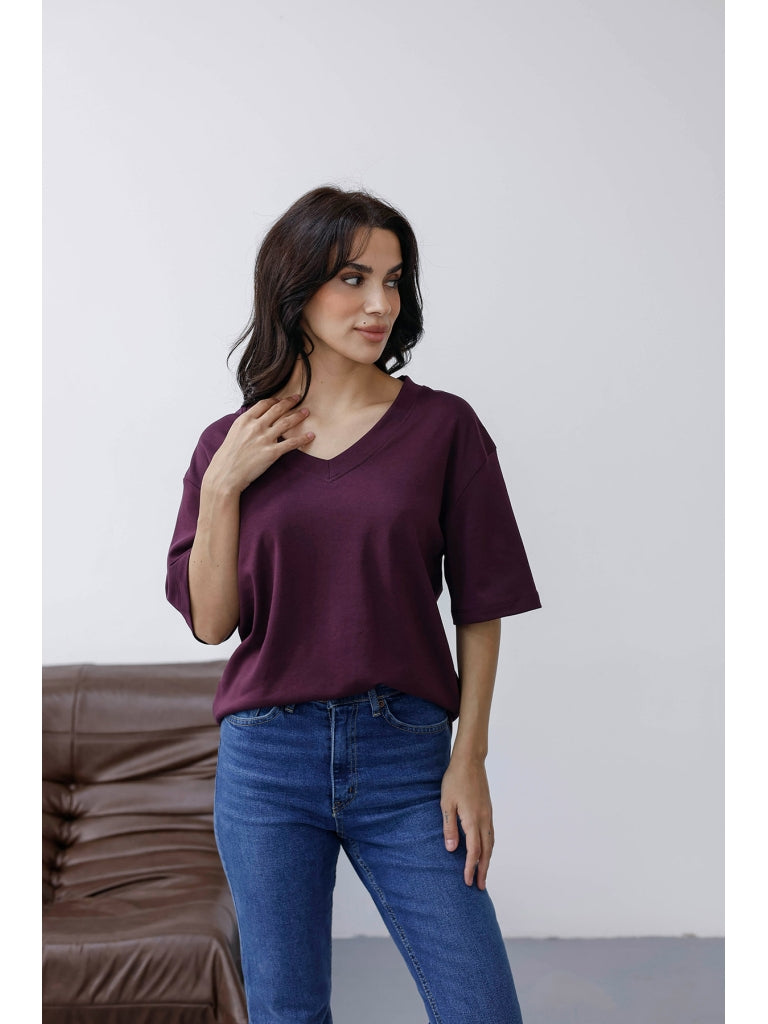 Mürdüm Orj Marka V Yaka Tshirt 6598-Mürdüm