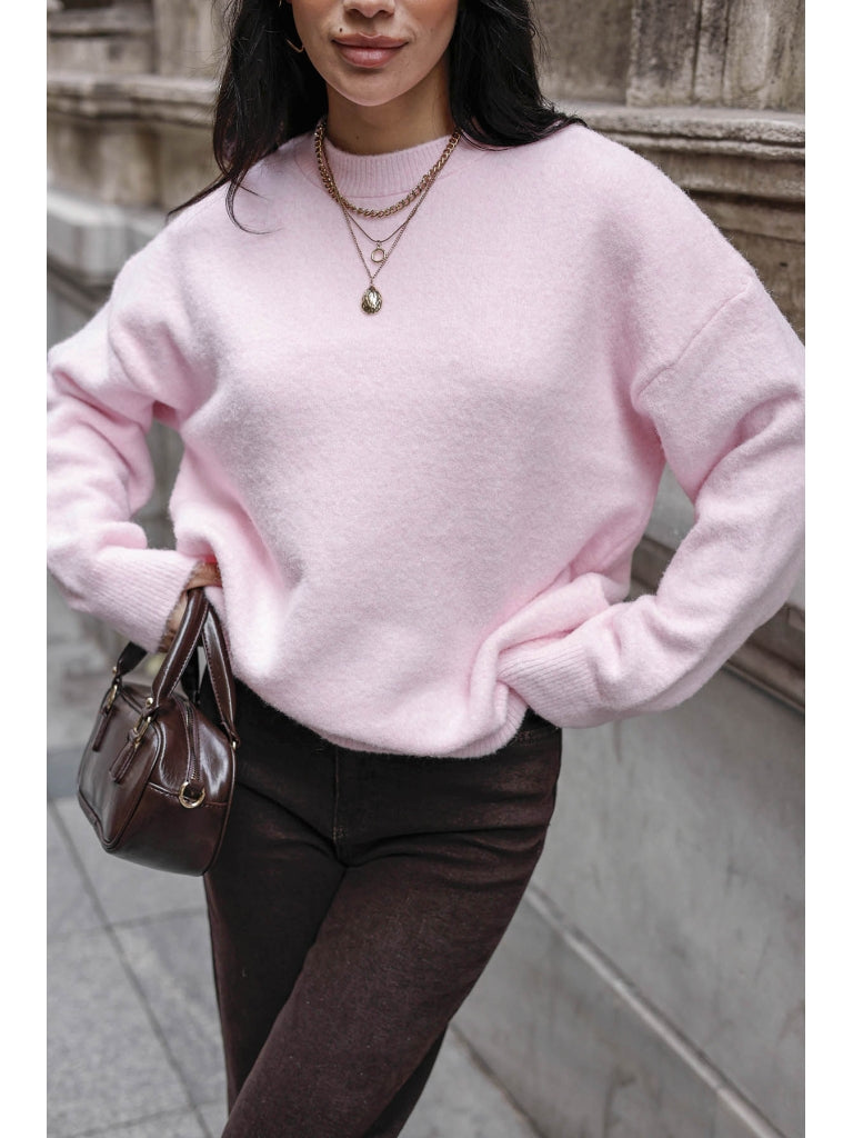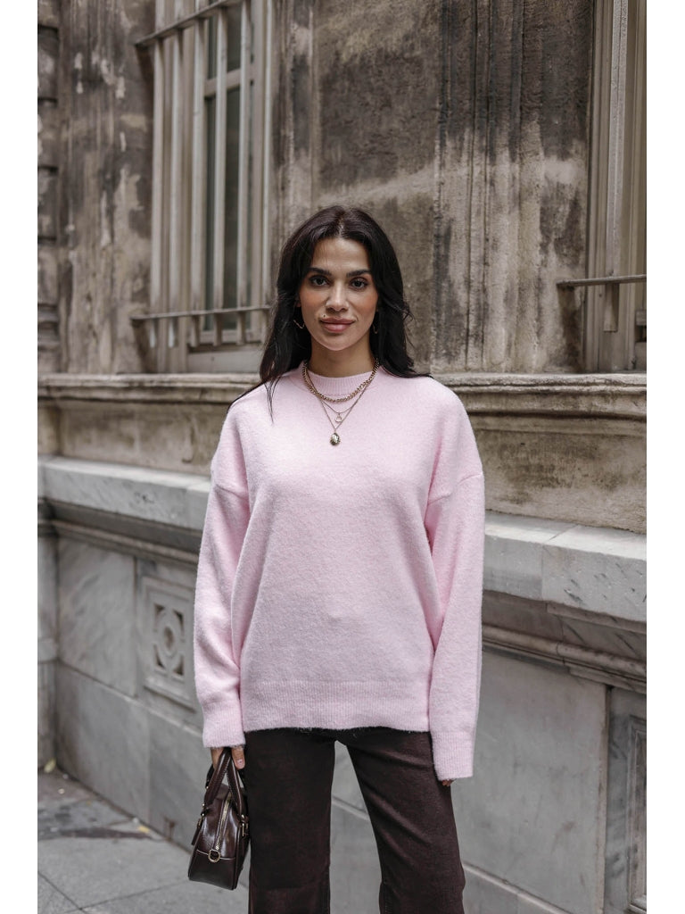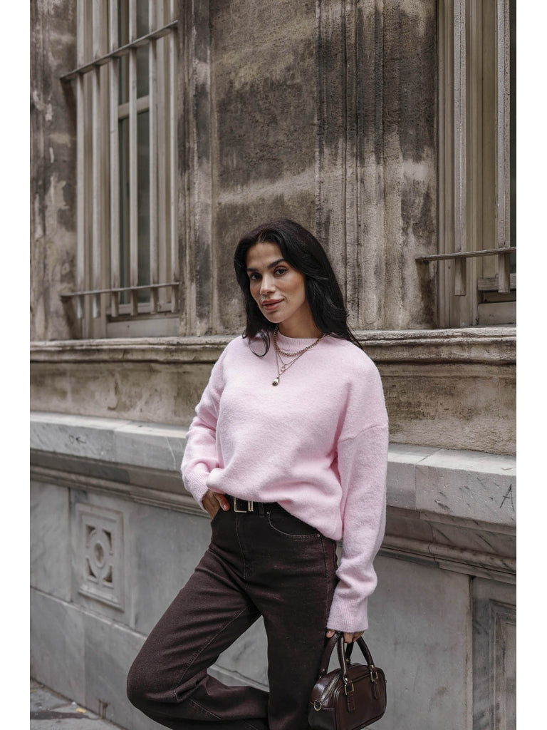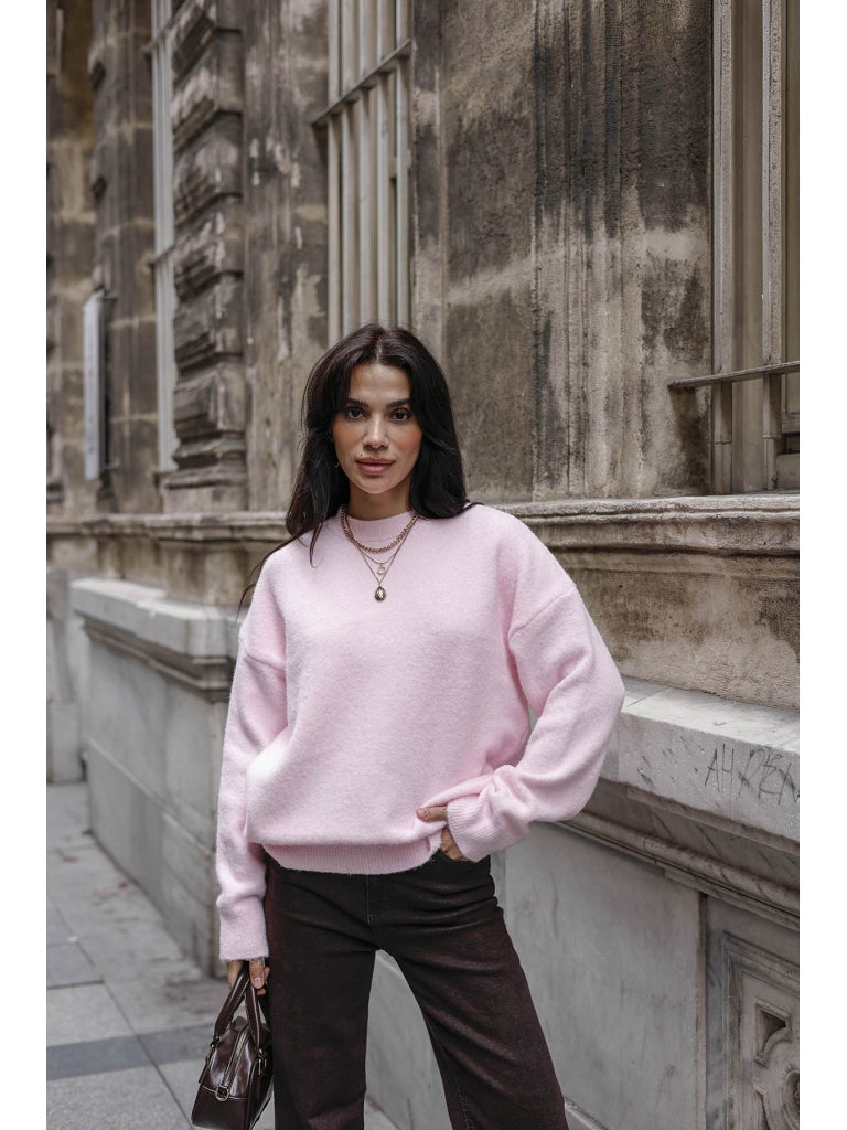 Pembe Bisiklet Yaka Yumoş Kazak 2373-Pembe