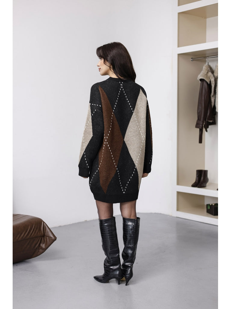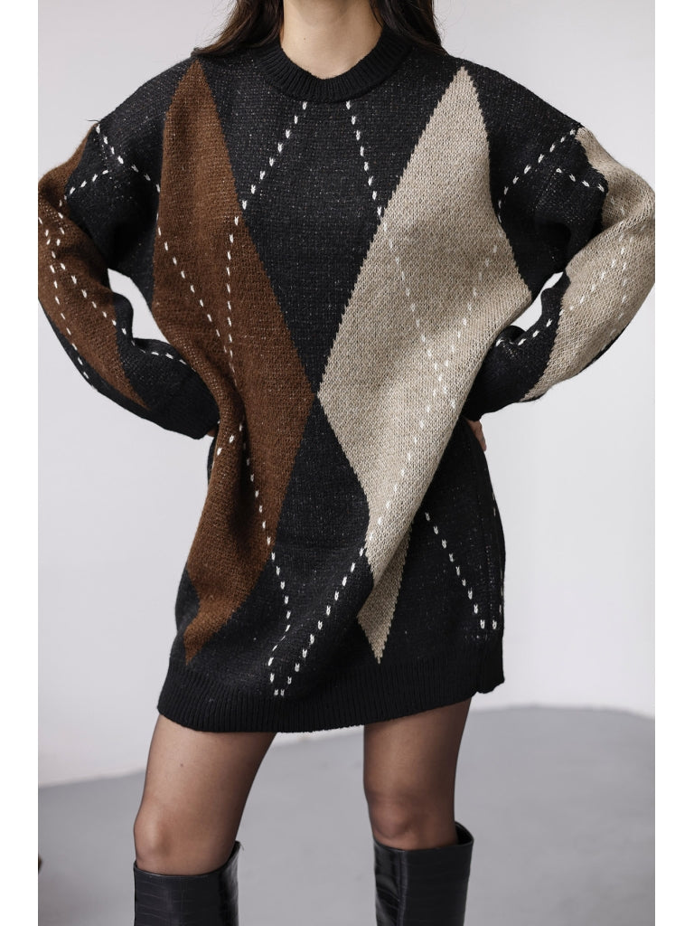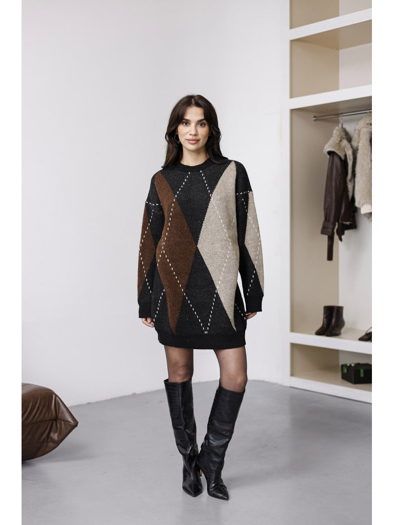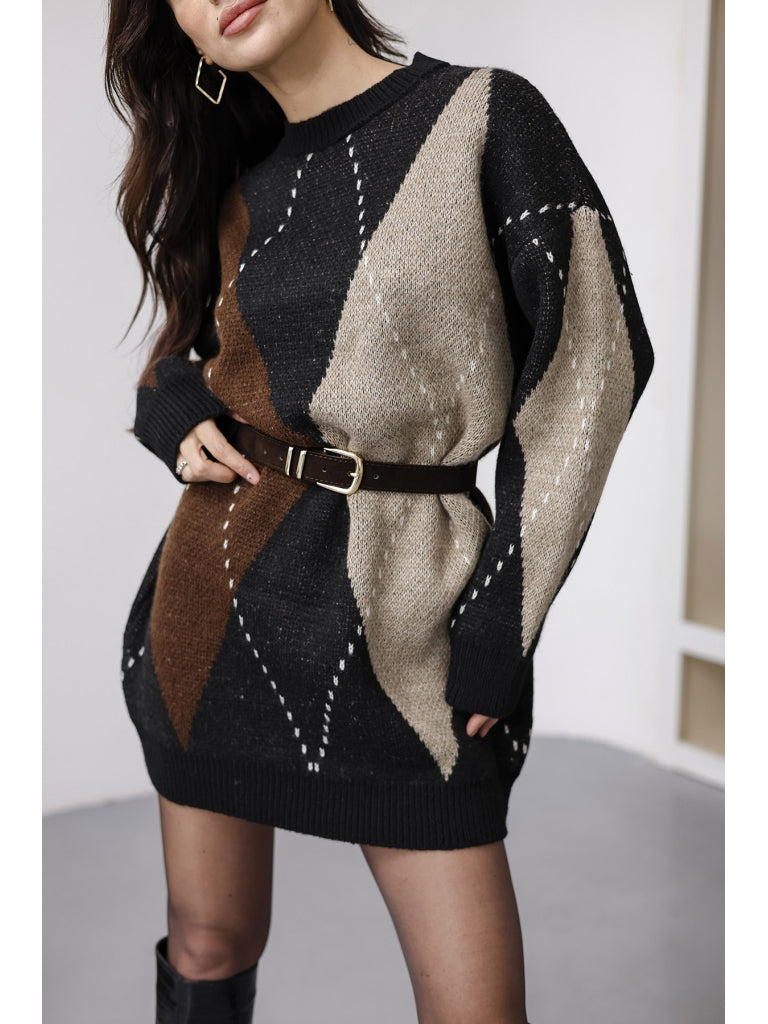 Siyah Baklava Desen Triko Elbise EY2610-Siyah