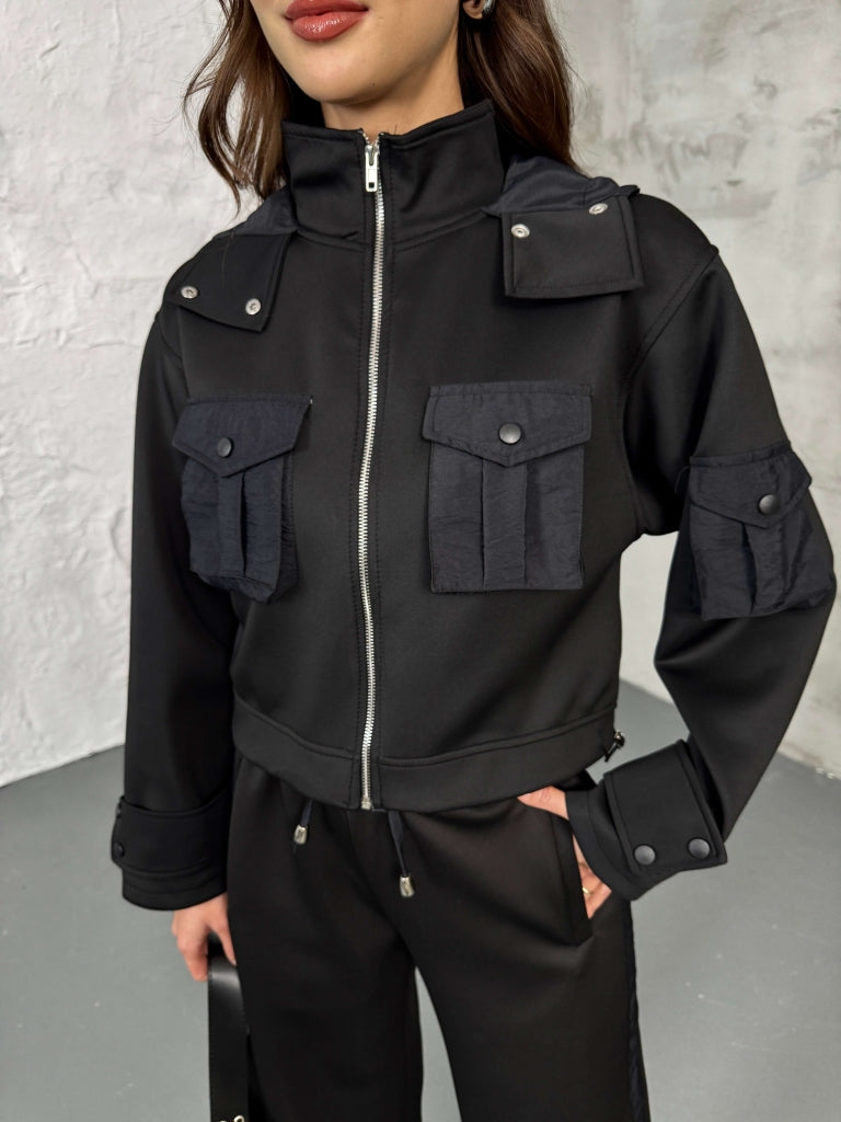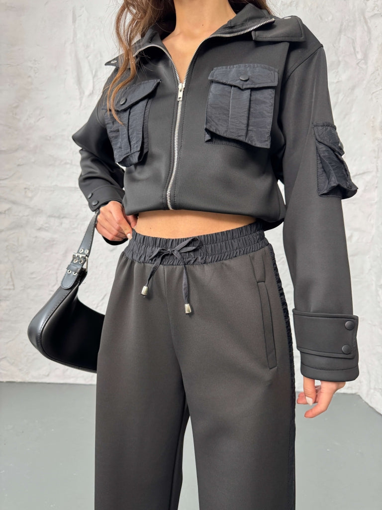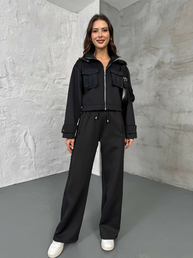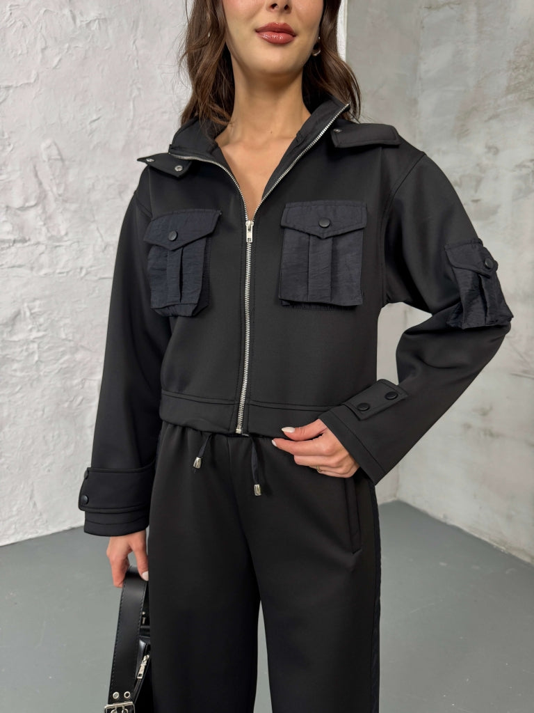 Siyah Cepli Paraşüt Detaylı Scuba İkili Takım