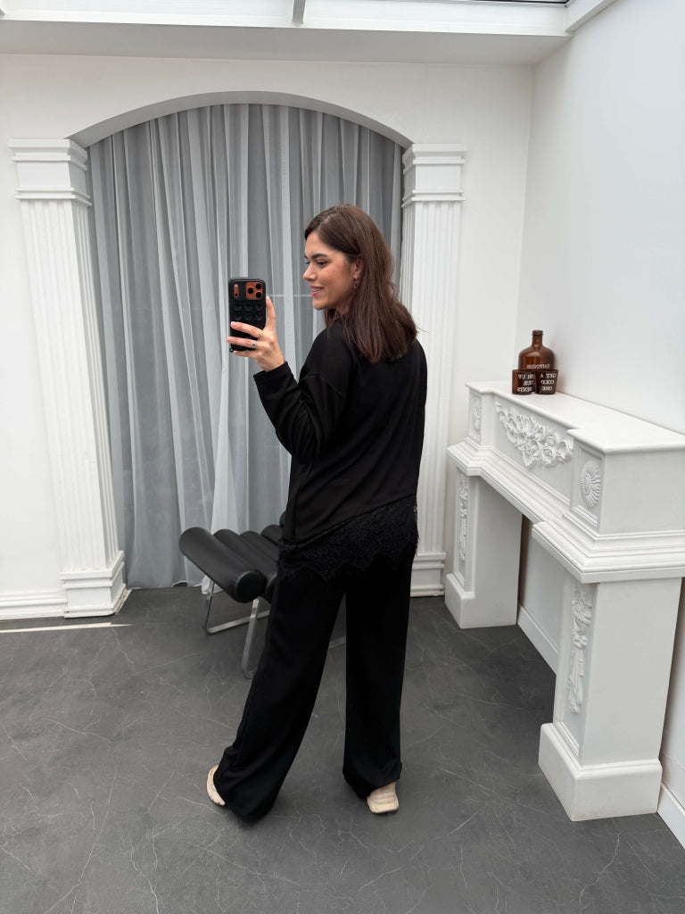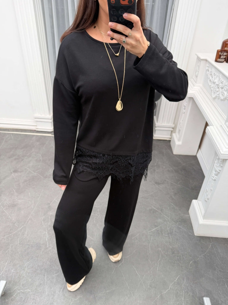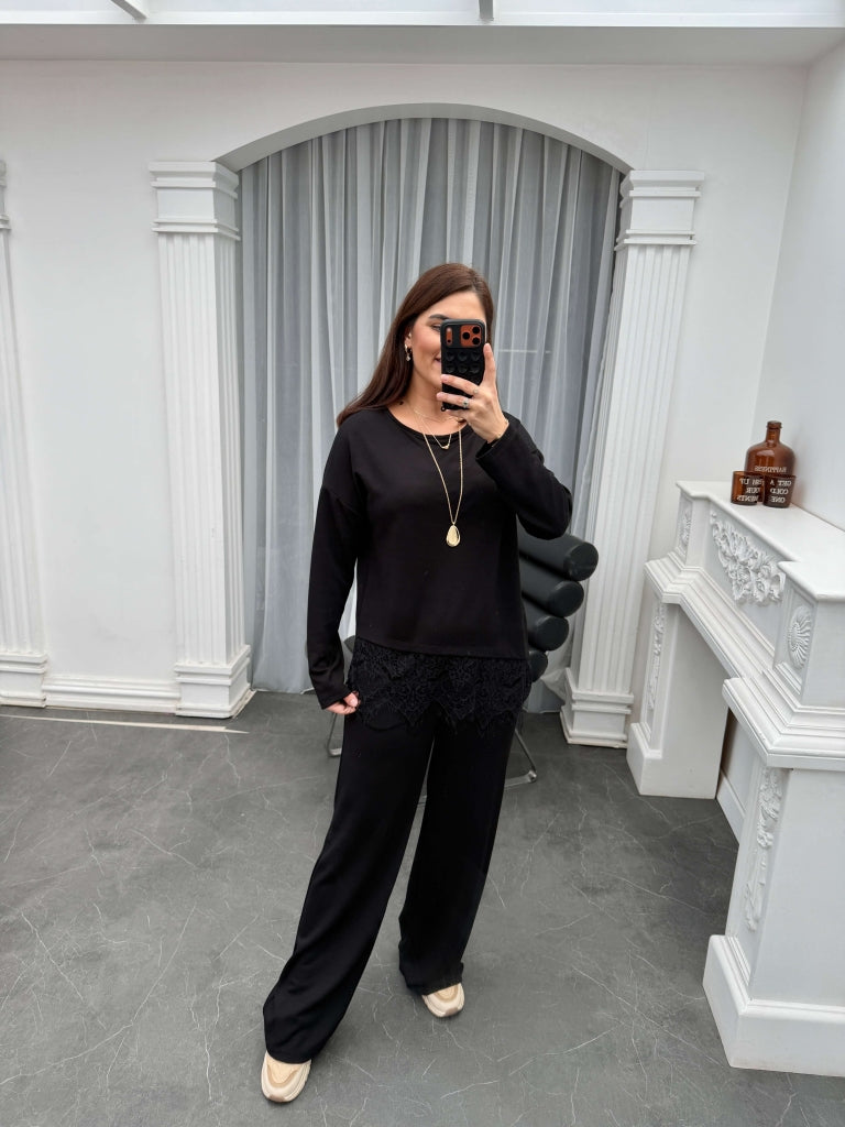 Siyah Etek Ucu Dantelli Modal Takım 4105-Siyah