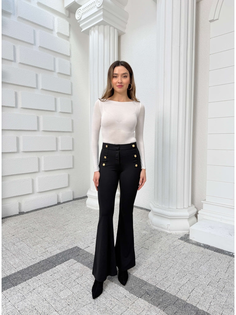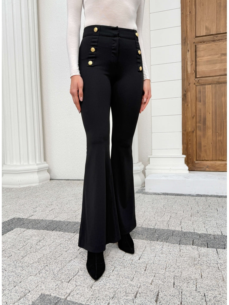 Siyah Gold Düğme Detaylı Pantolon 9027-Sİyah