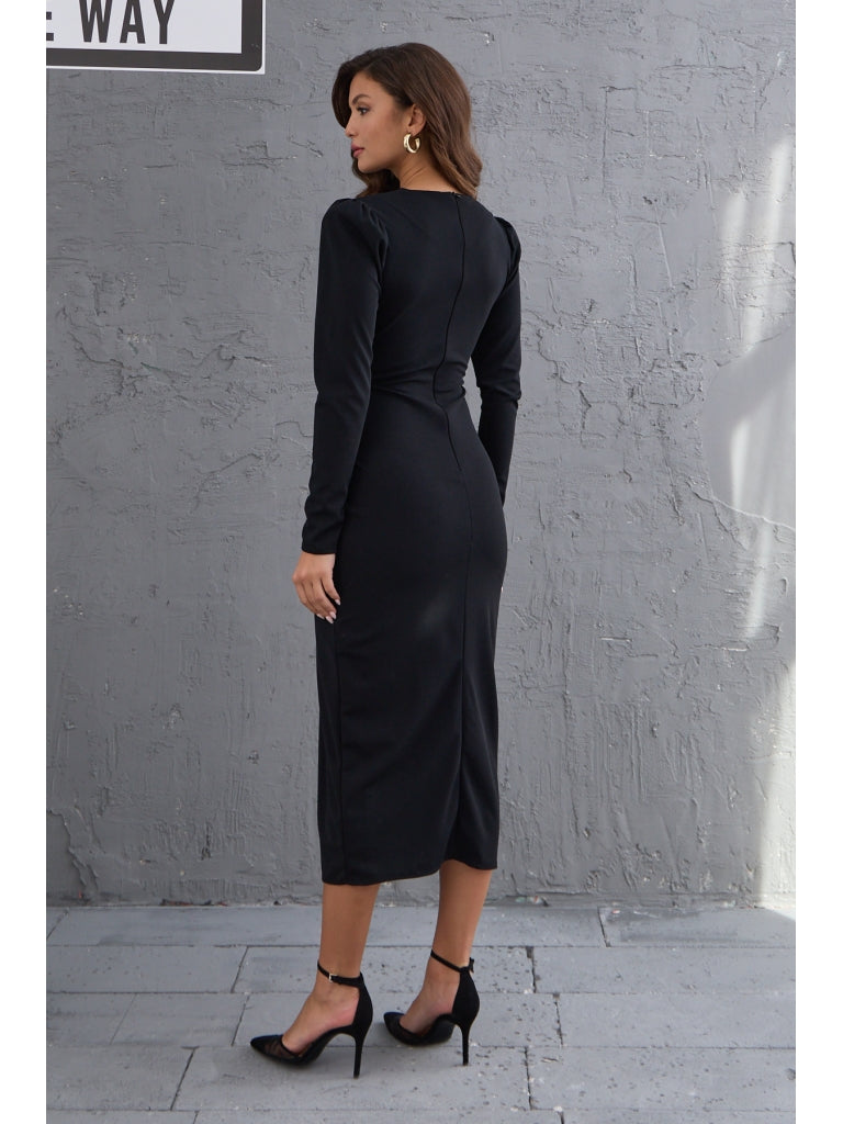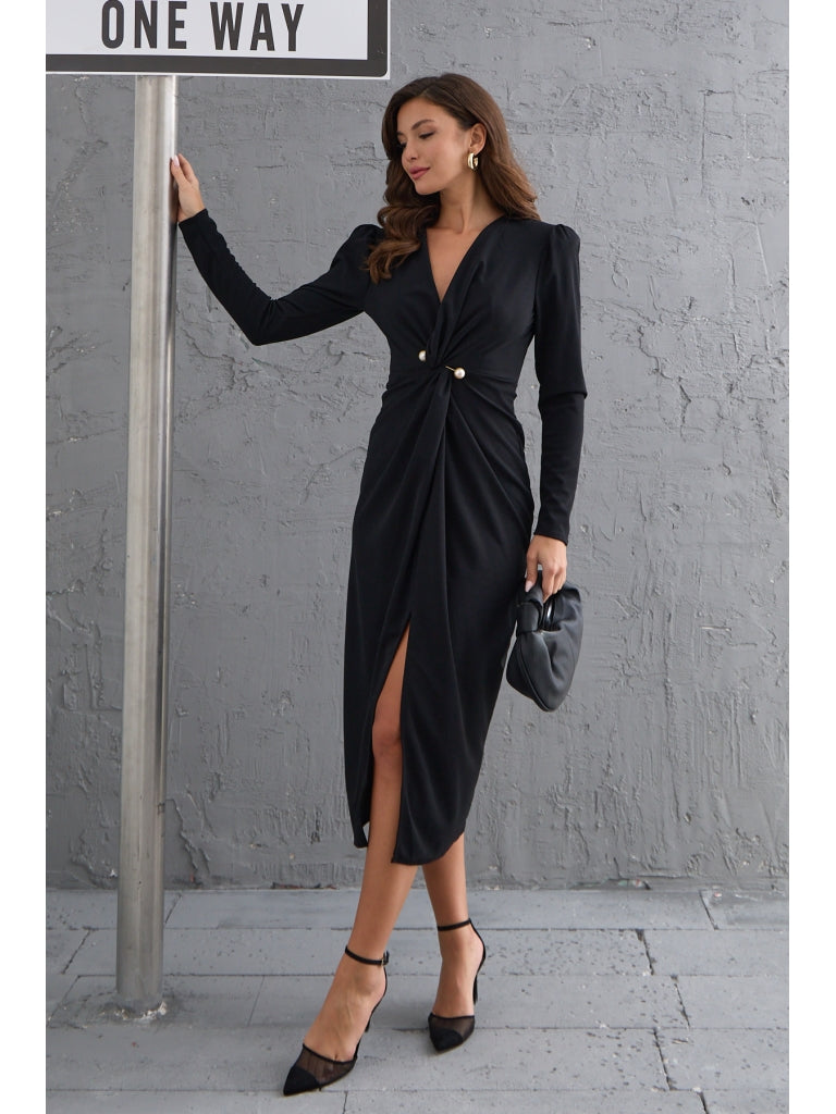 • Siyah İnci Aksesuarlı Vatkalı Elbise