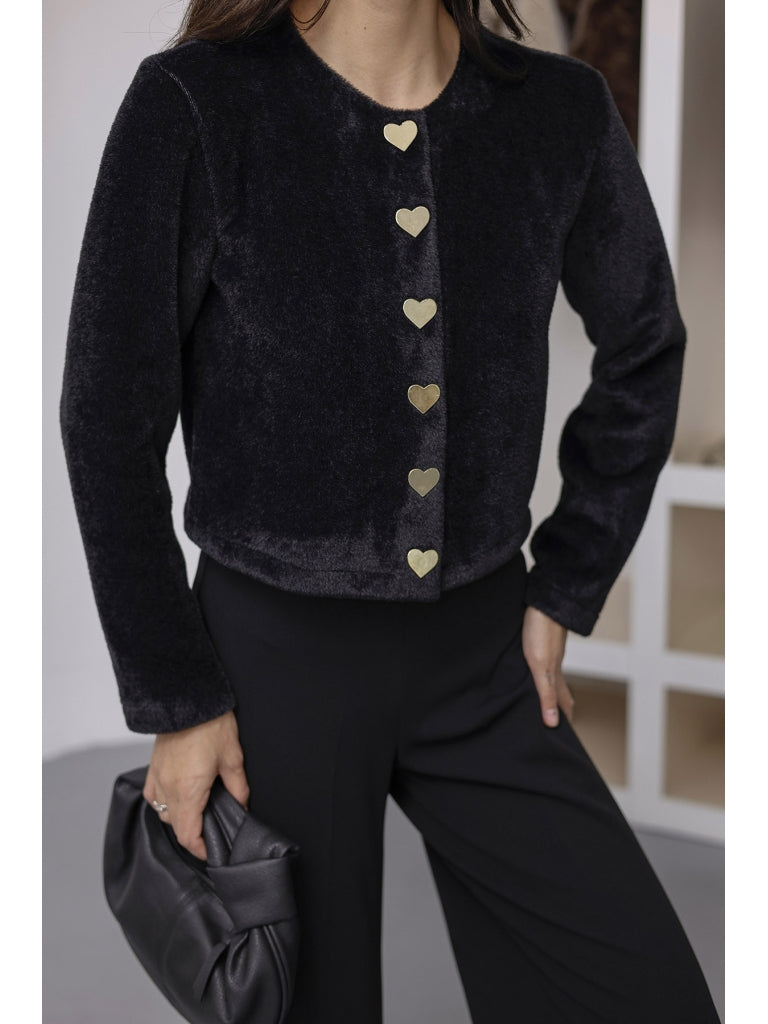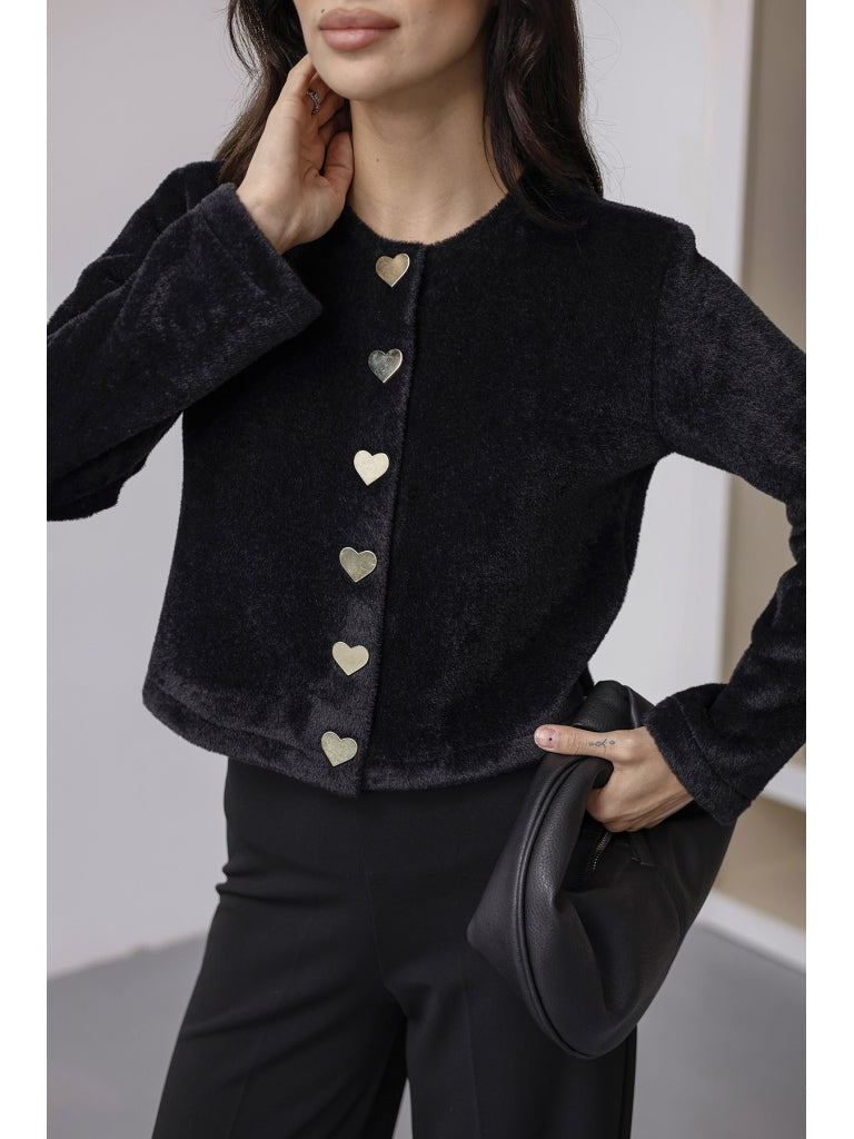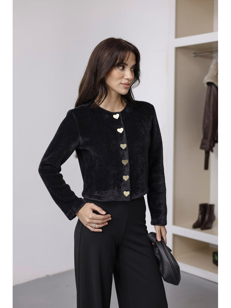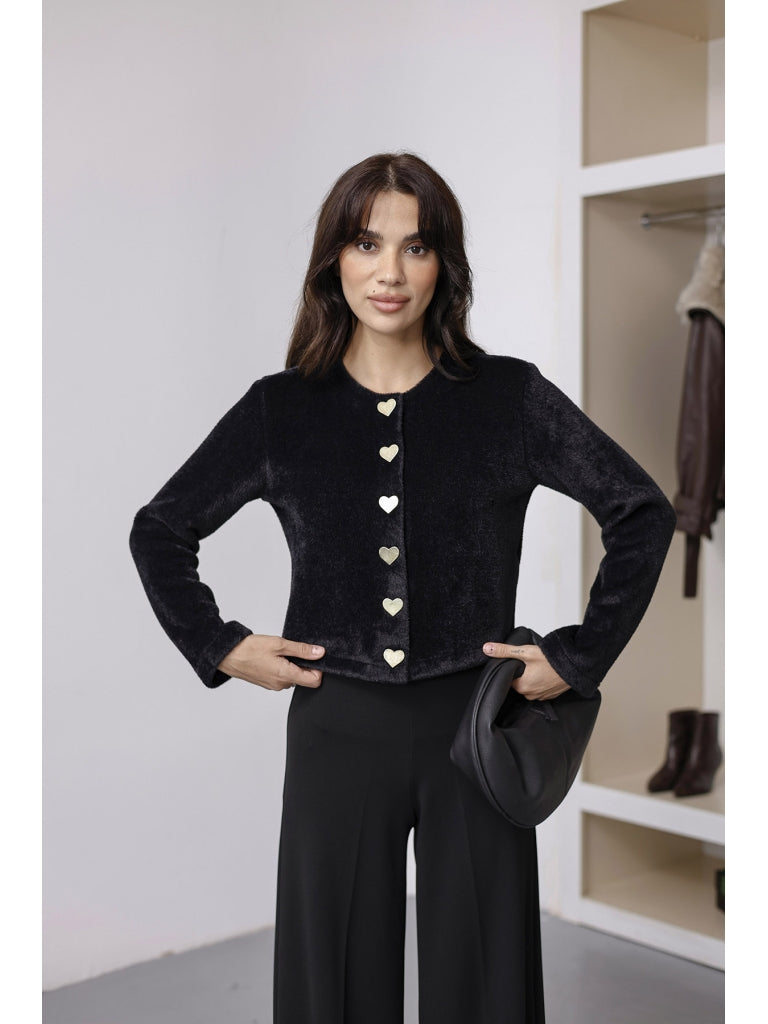 Siyah Kalp Düğmeli Yumoş Hırka 7562-Siyah