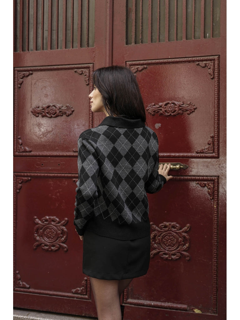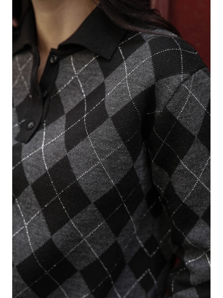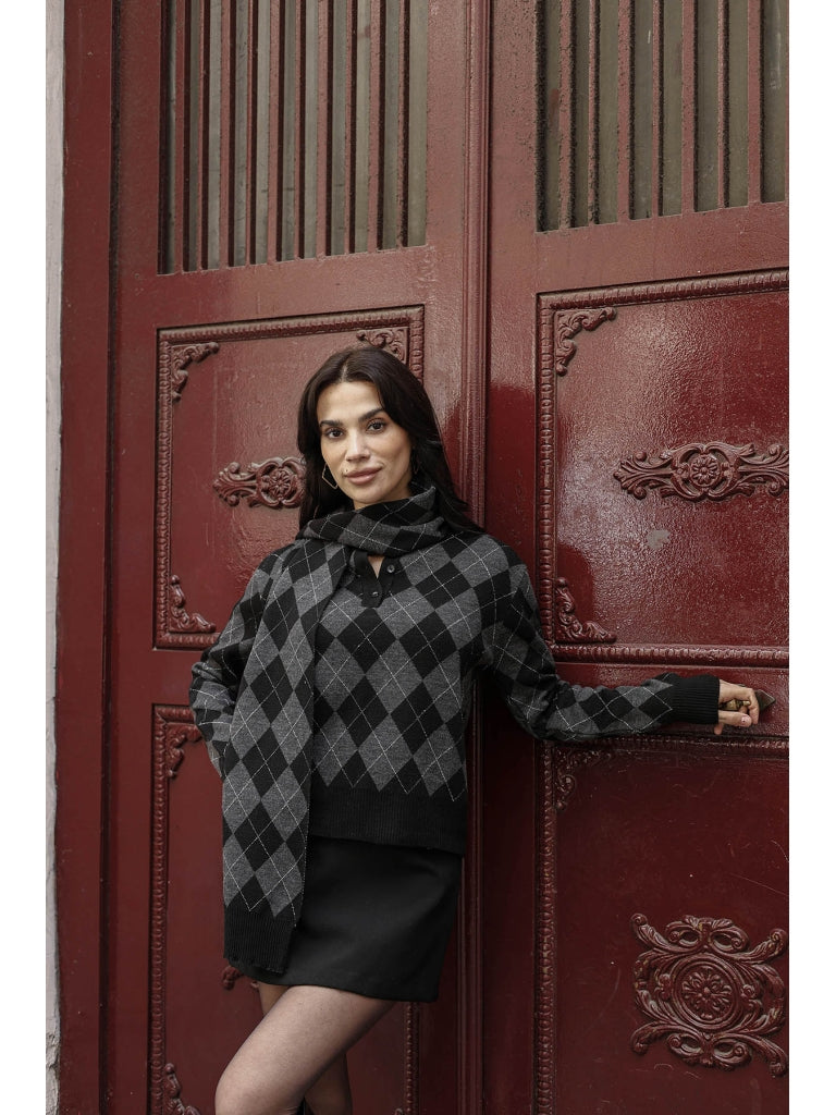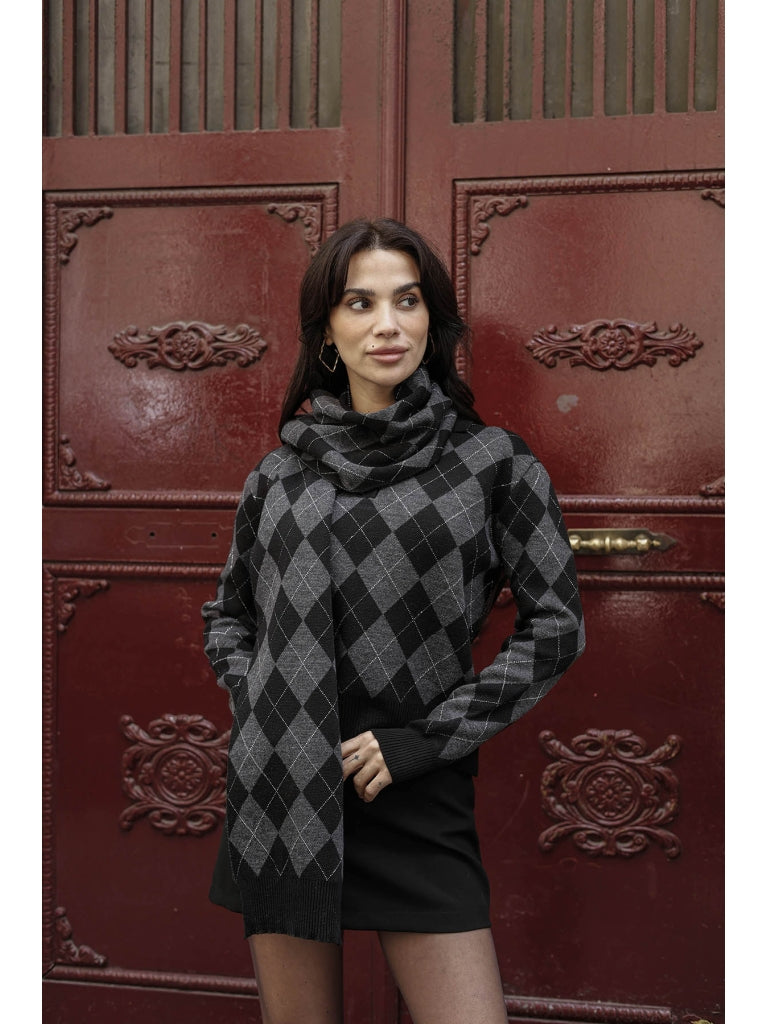 Siyah Sim Detaylı Atkılı Triko Kazak 2620-Siyah