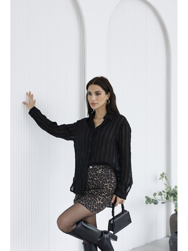 Siyah Sim Detaylı Transparan Gömlek 3225-SİYAH