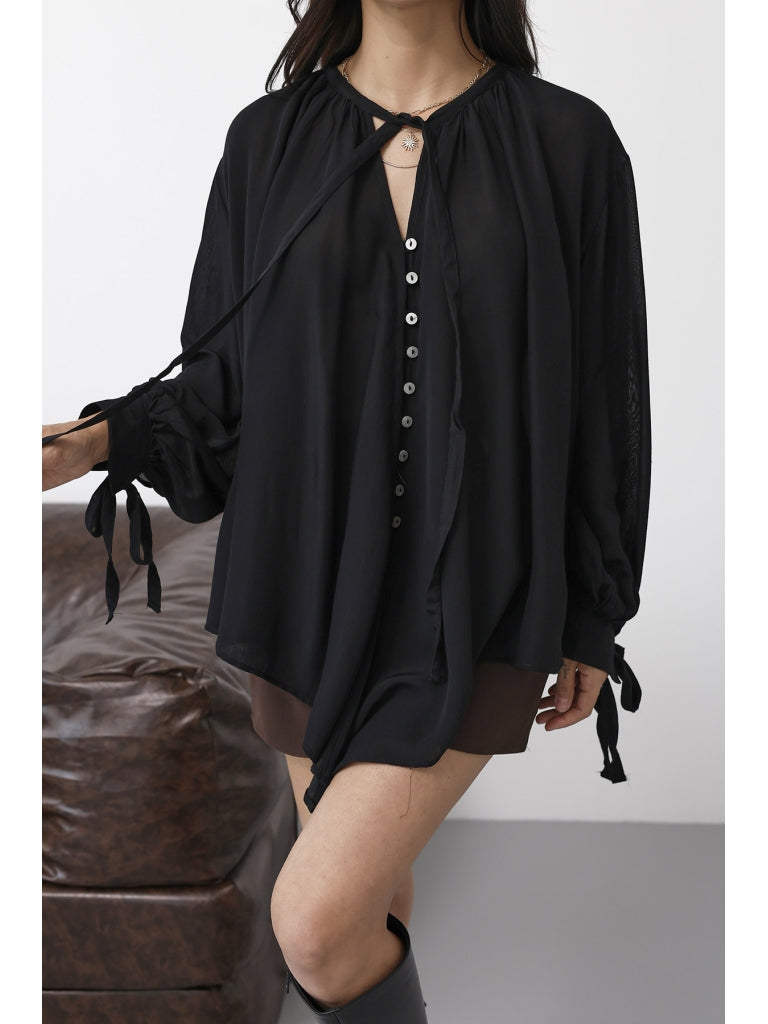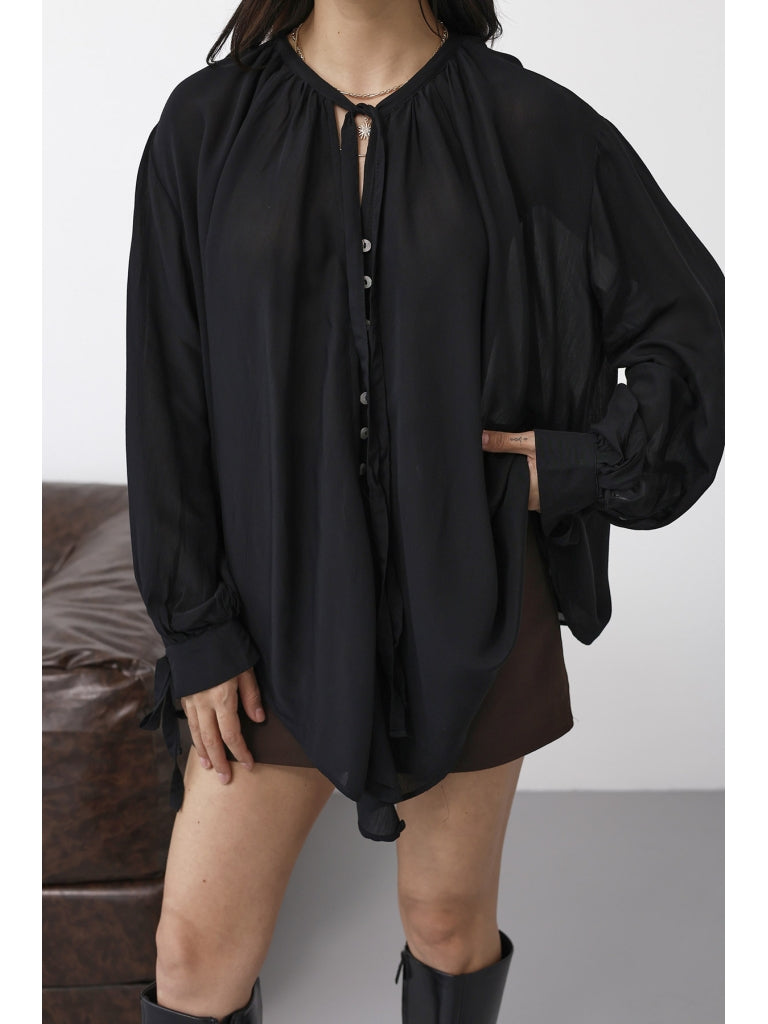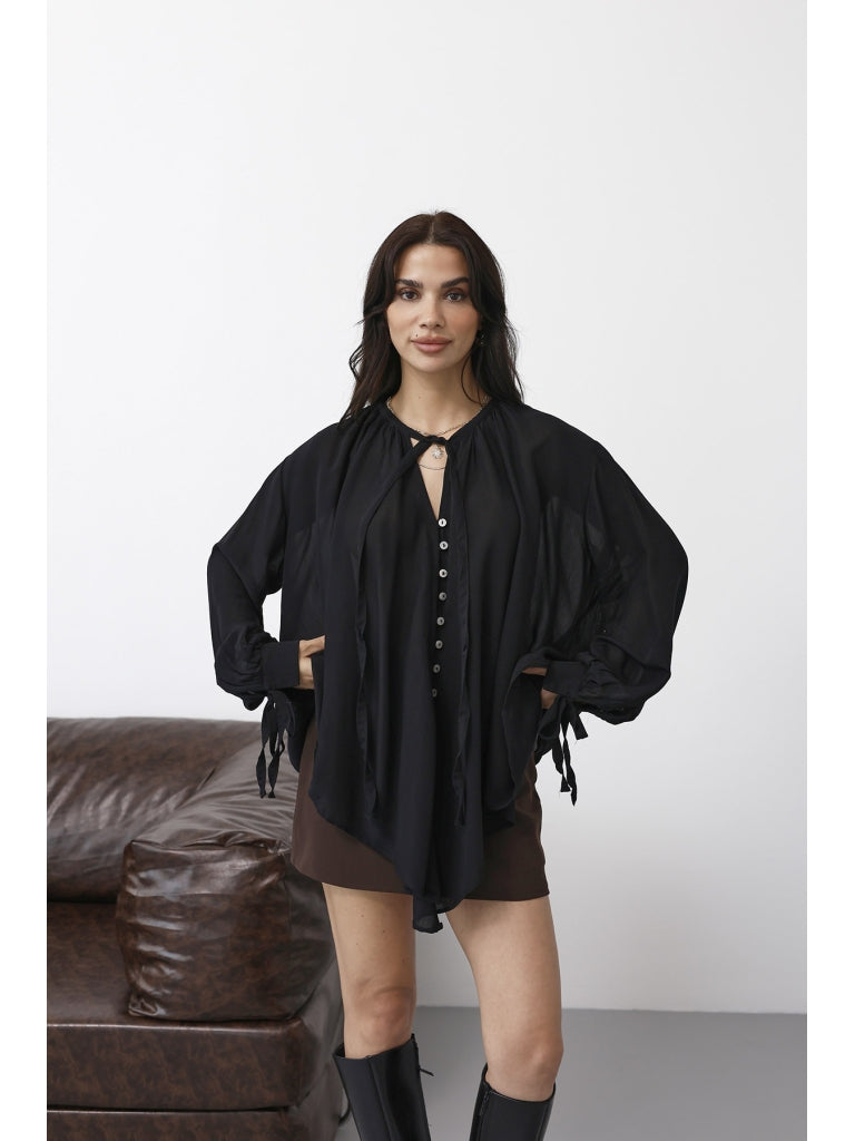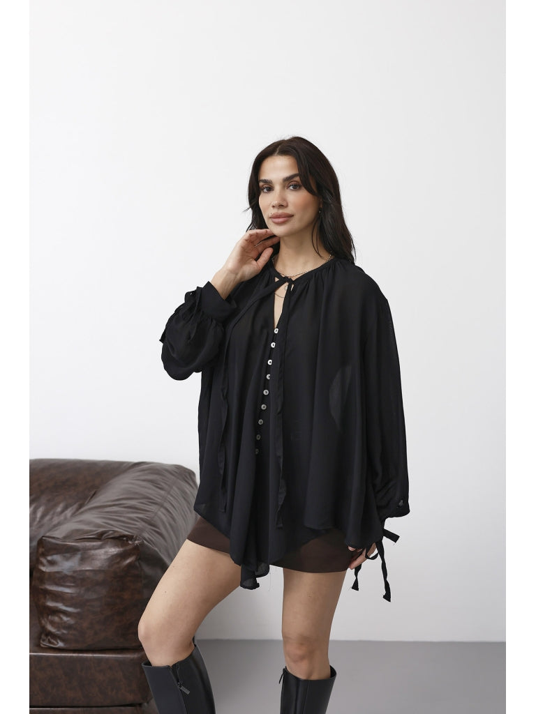 Siyah Yakası Fularlı Salaş Gömlek 4988-Siyah