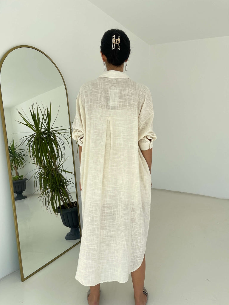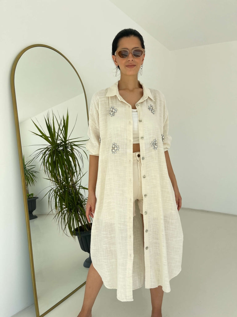 Taş İşlemeli Keten Gömlek