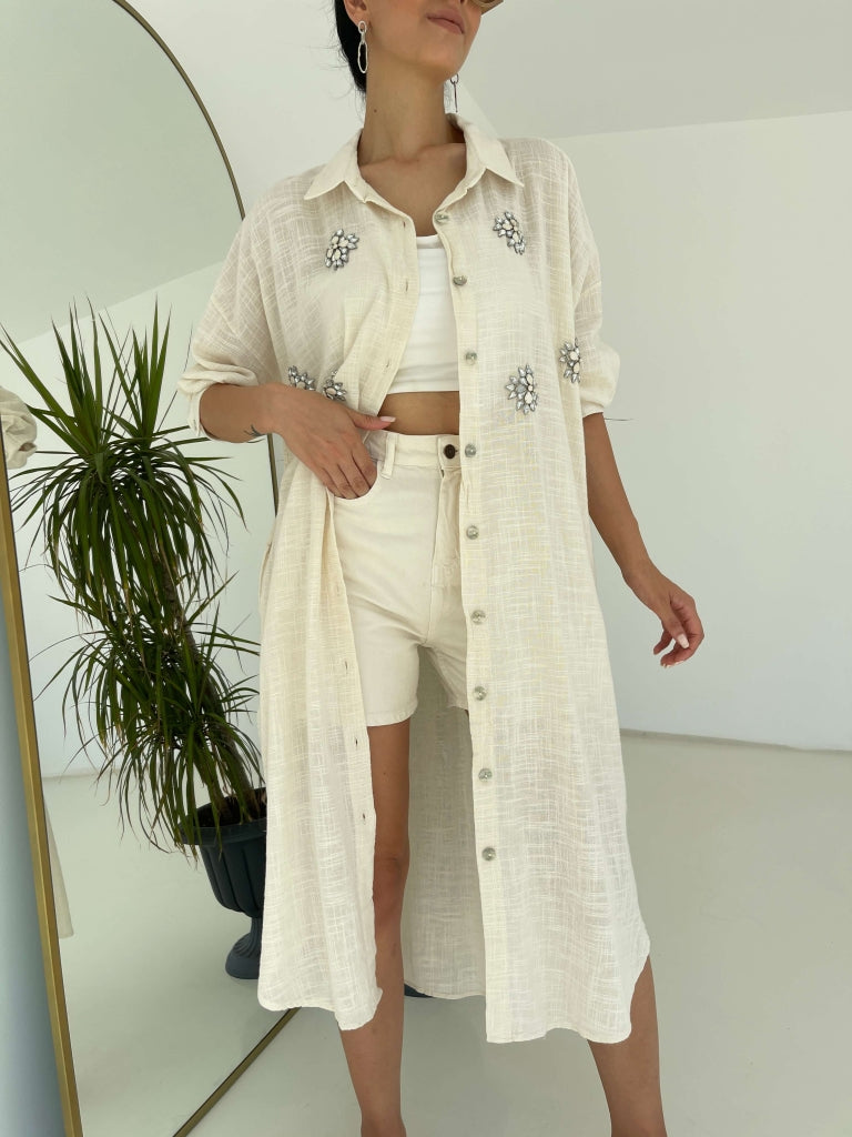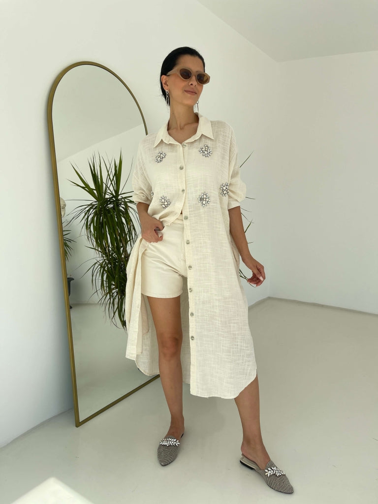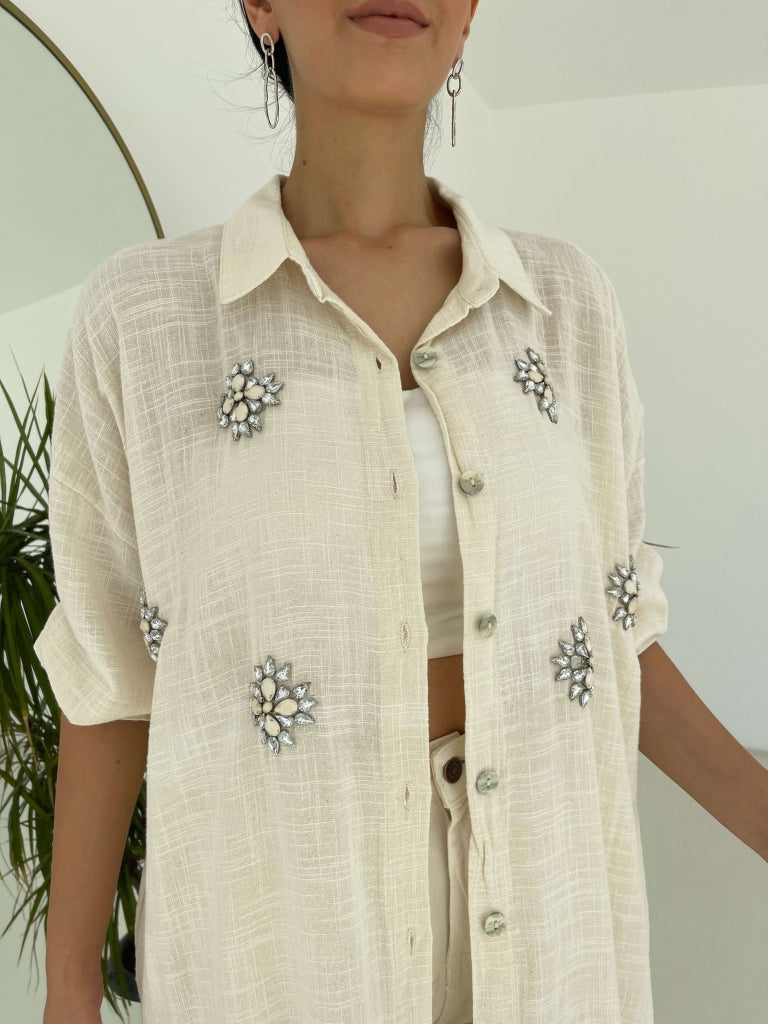• Taş İşlemeli Keten Gömlek