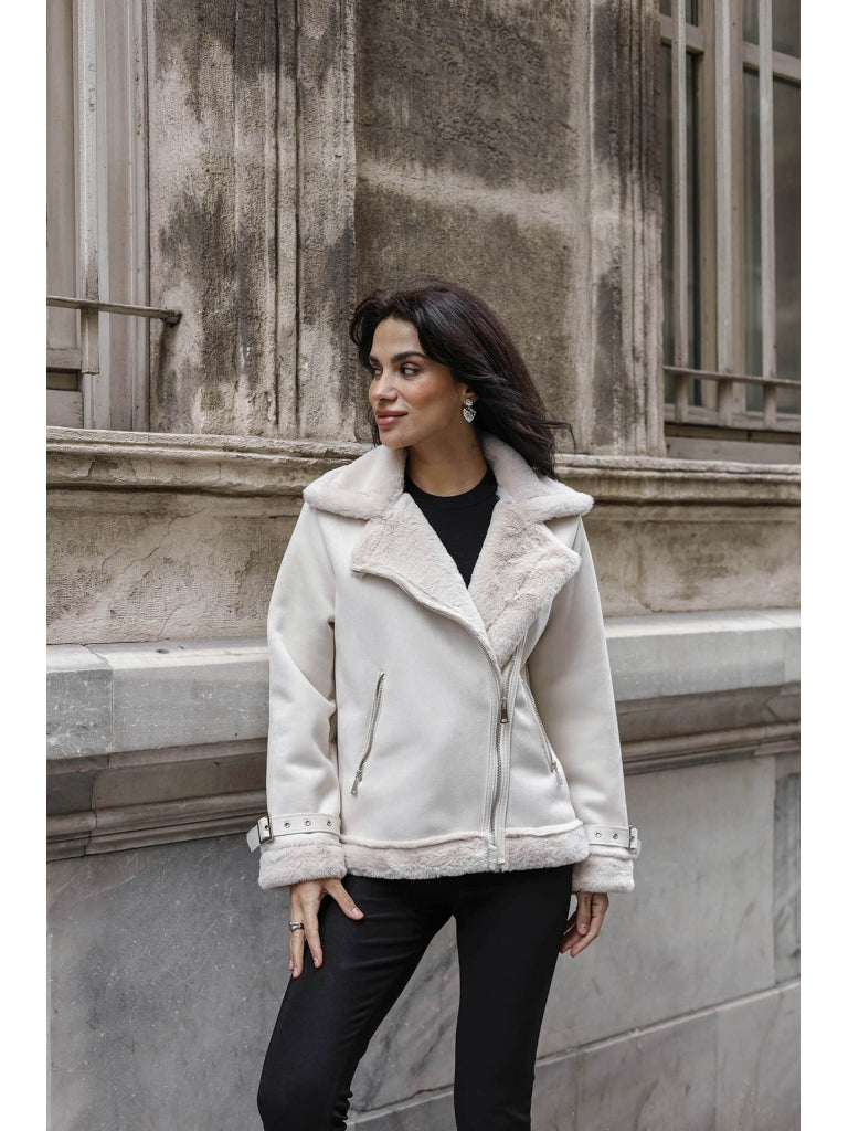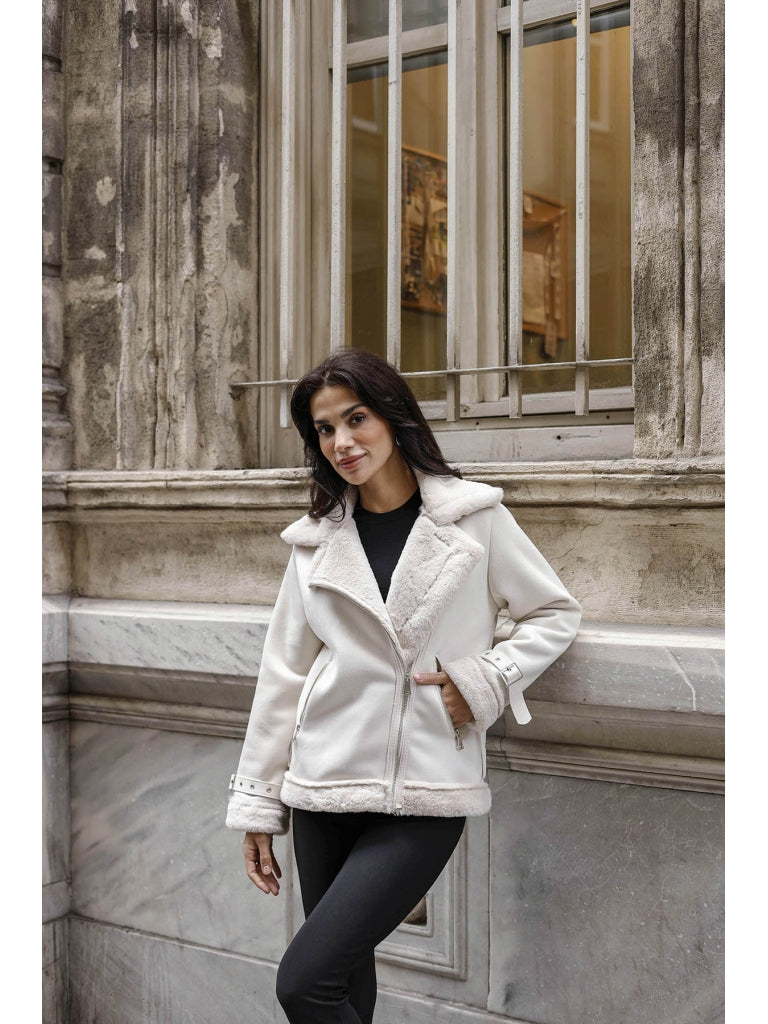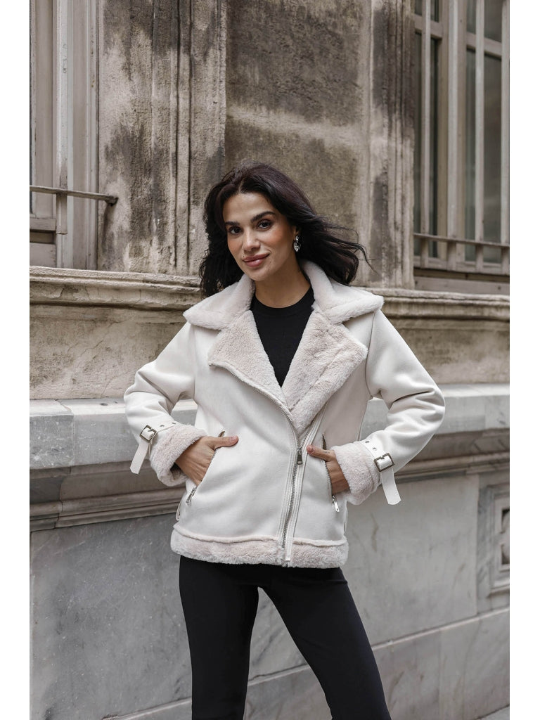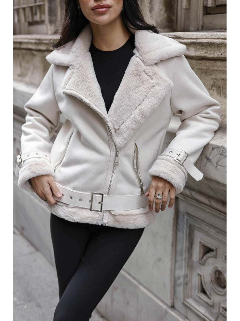 Taş Kürk Detaylı Nubuk Mont AK2292-Taş