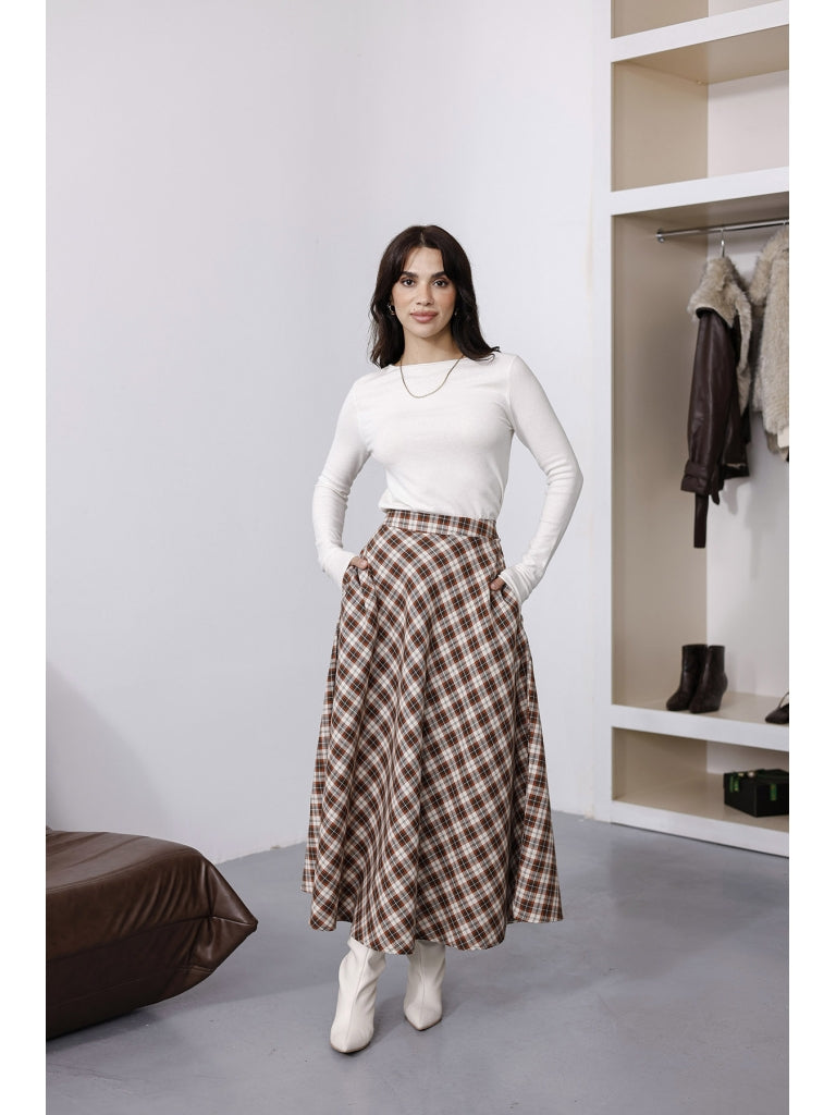 Turuncu Ekoseli Etek 8015-Turuncu