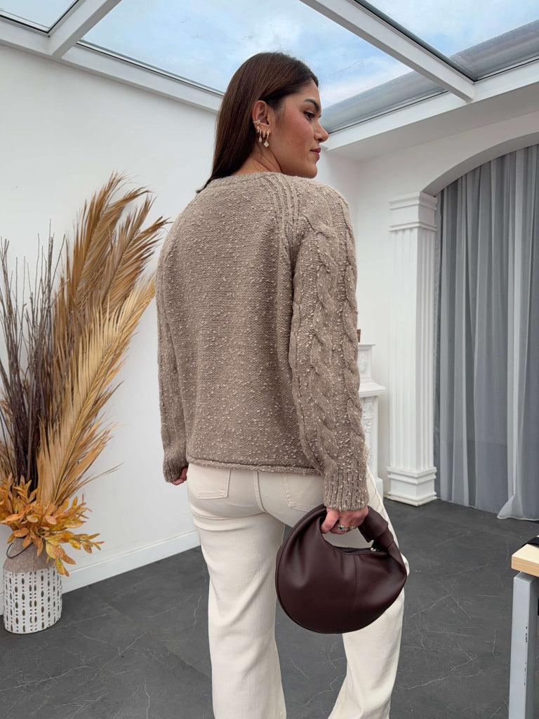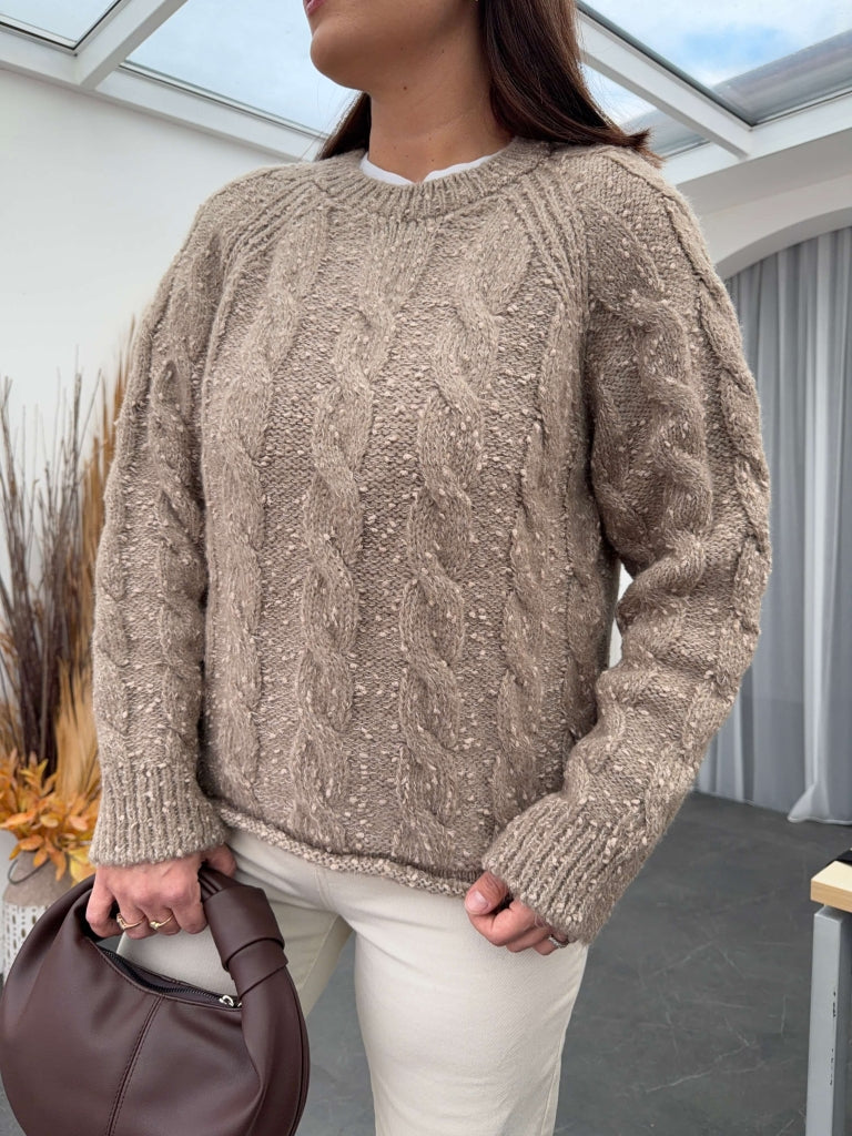 Vizon Saç Örgülü Kırışmalı Triko EY2584-VİZON