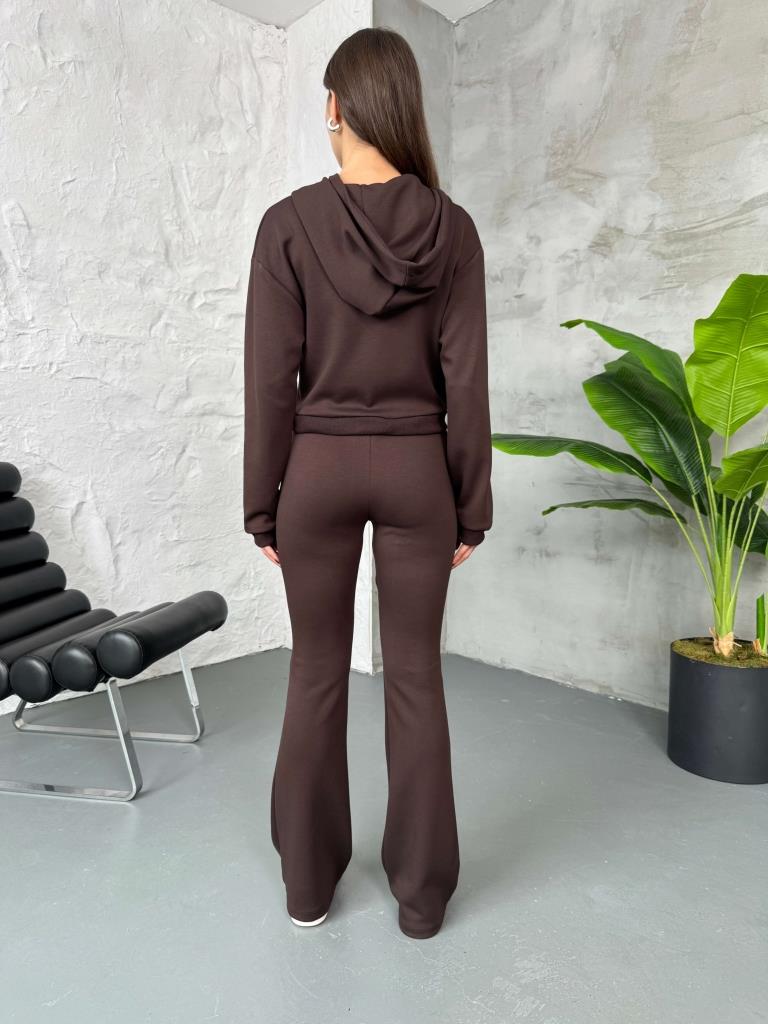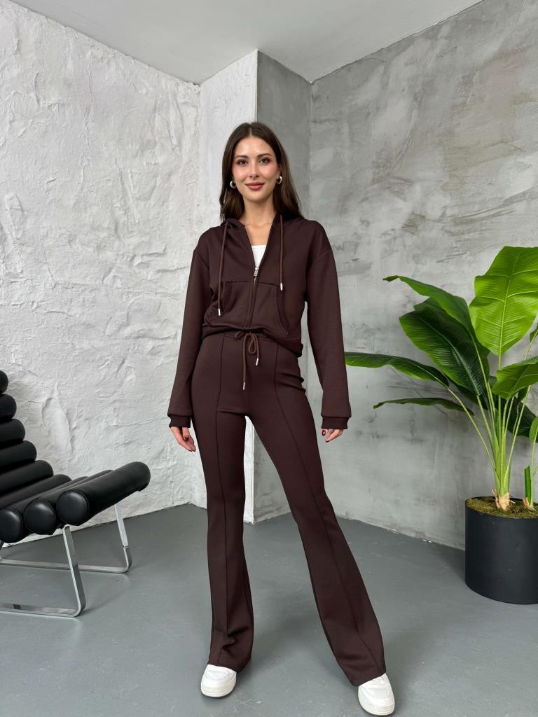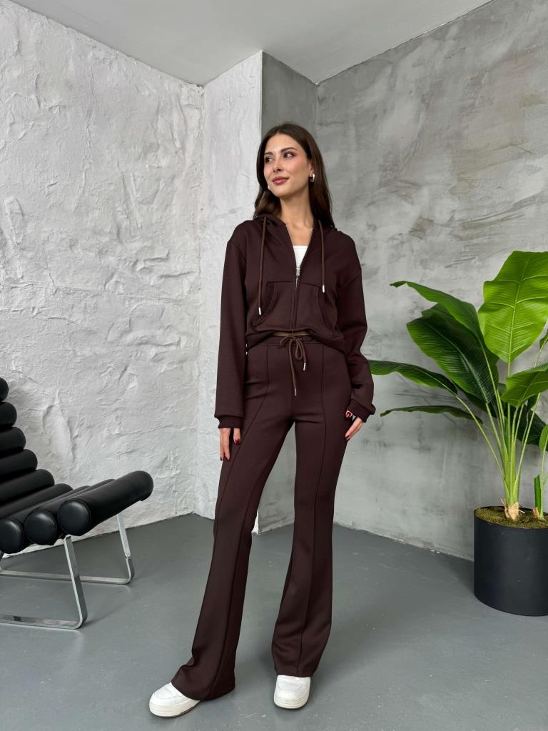 Acı Kahve Dikiş Detay Fermuarlı Sweat Takım (4039-Acı Kahve)