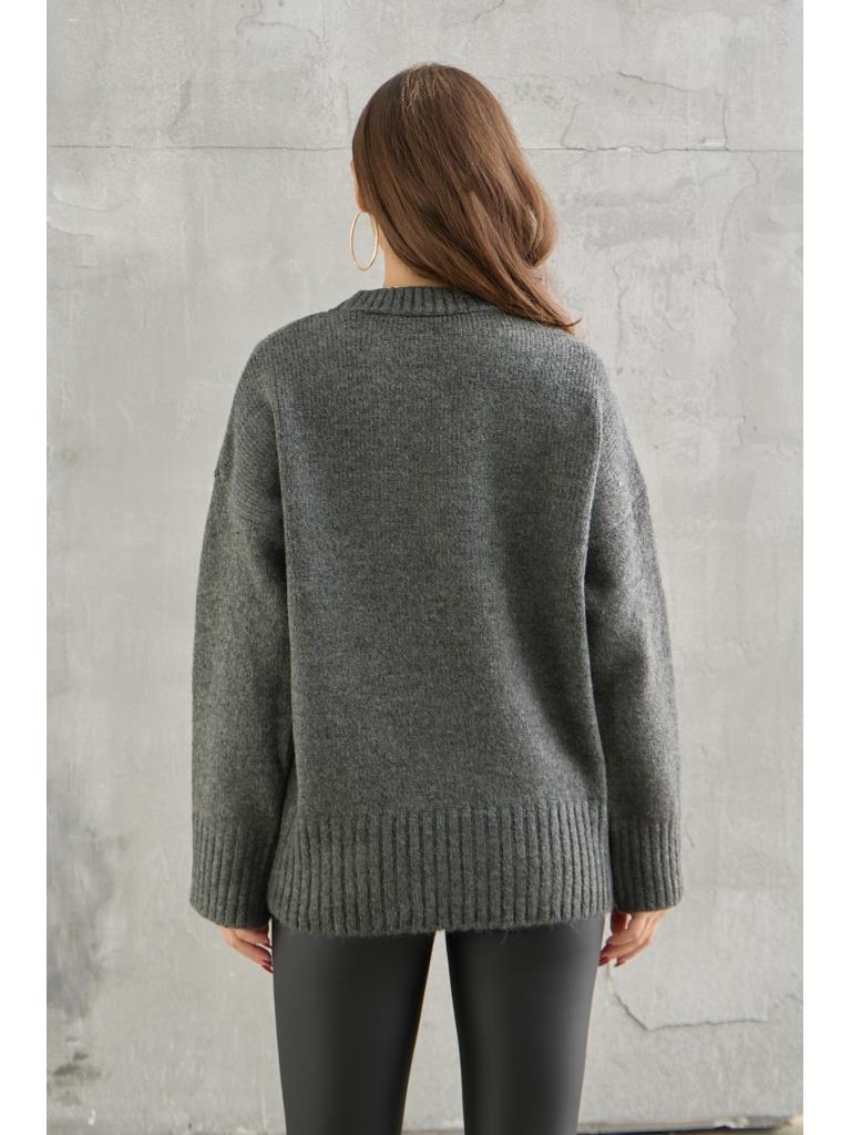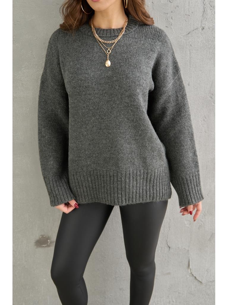 Antrasit Bisiklet Yaka Oversize Kazak (2217-ANTRASİT)