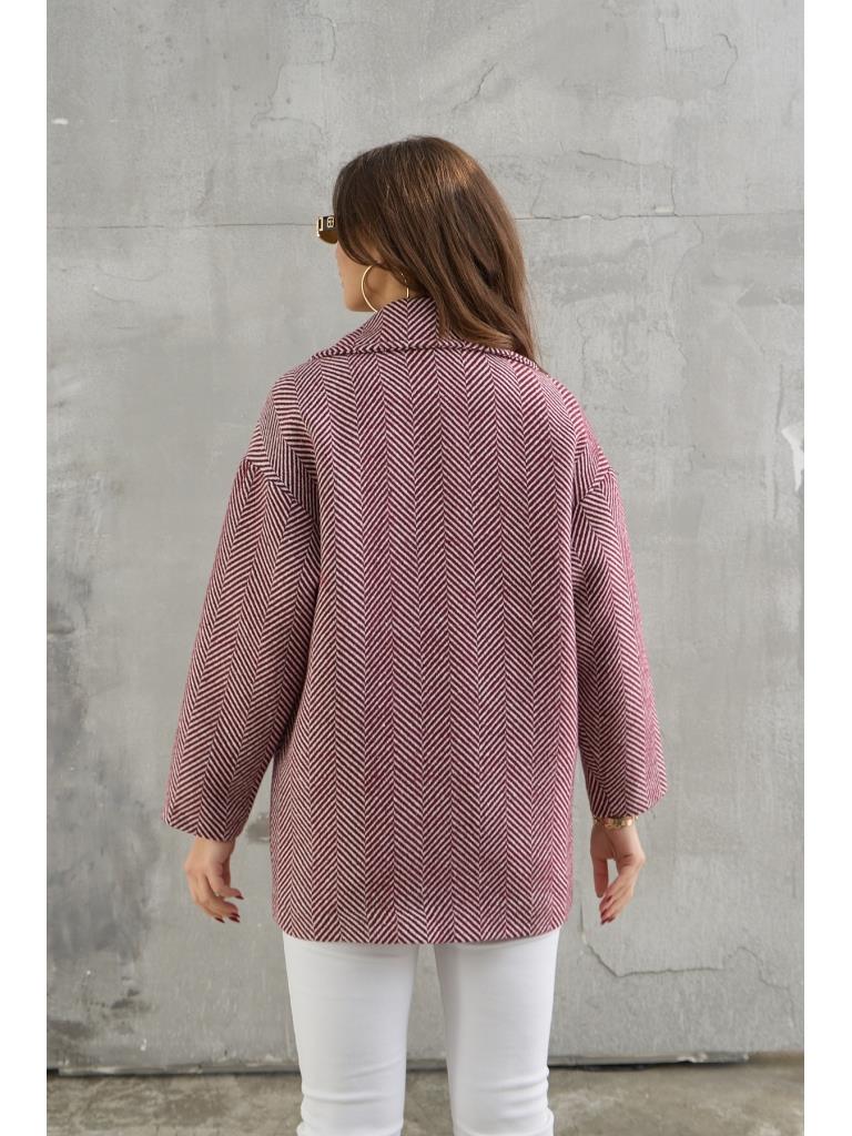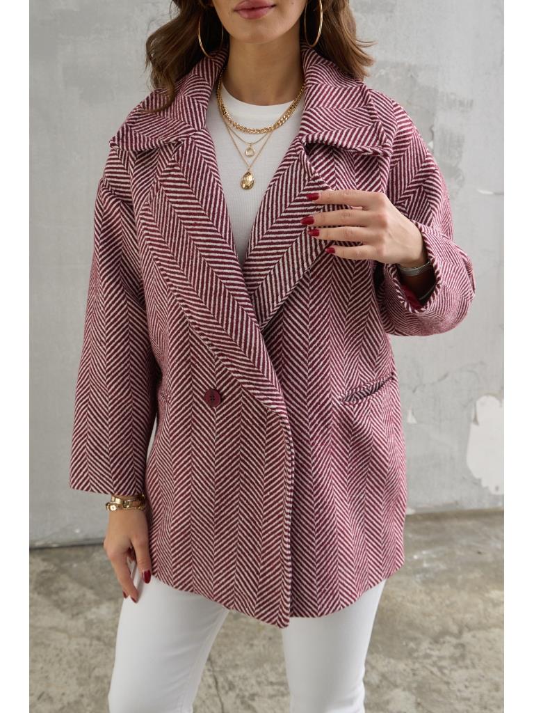 Bordo Balık Sırtı Oversize Astarlı Kısa Kaban (9252-Bordo)