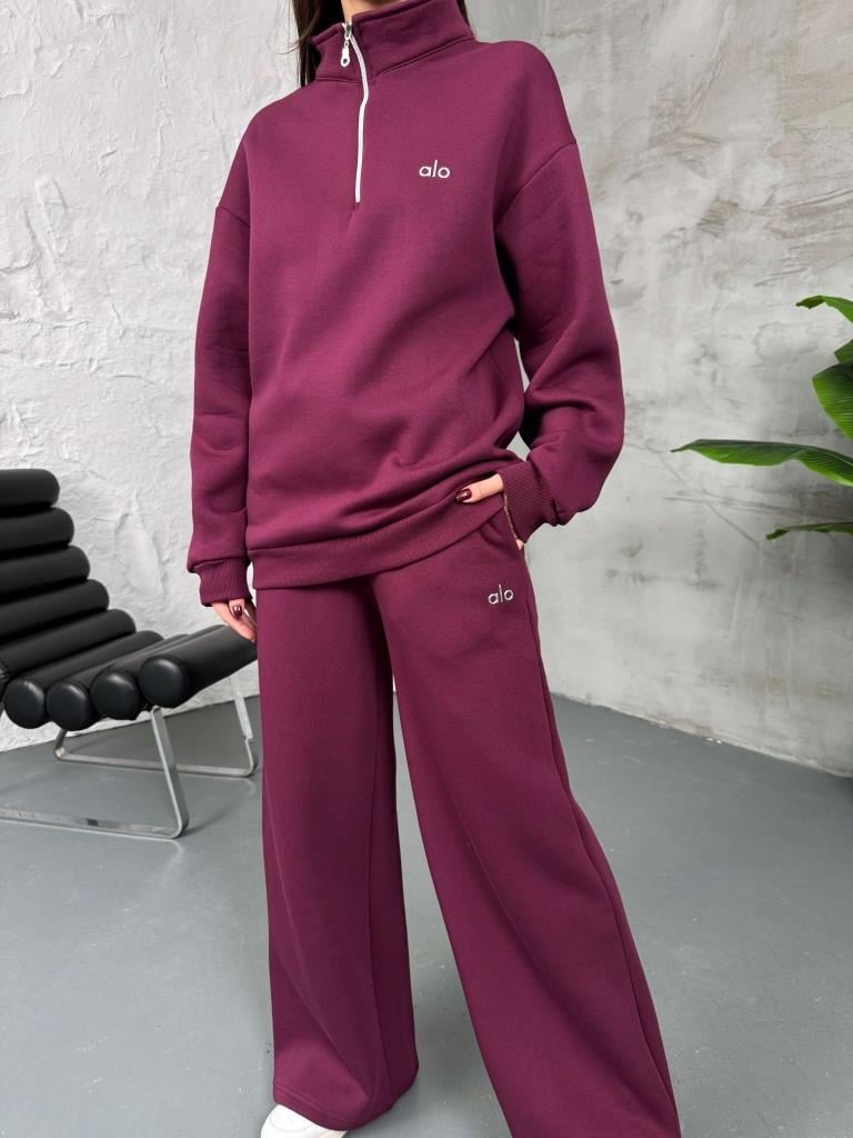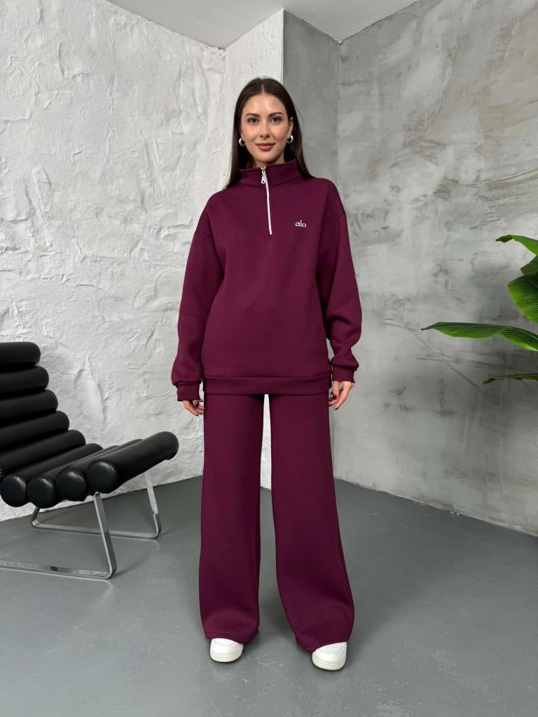 Bordo Yarım Fermuarlı Şardonlu Sweat Takım (4028-Bordo)